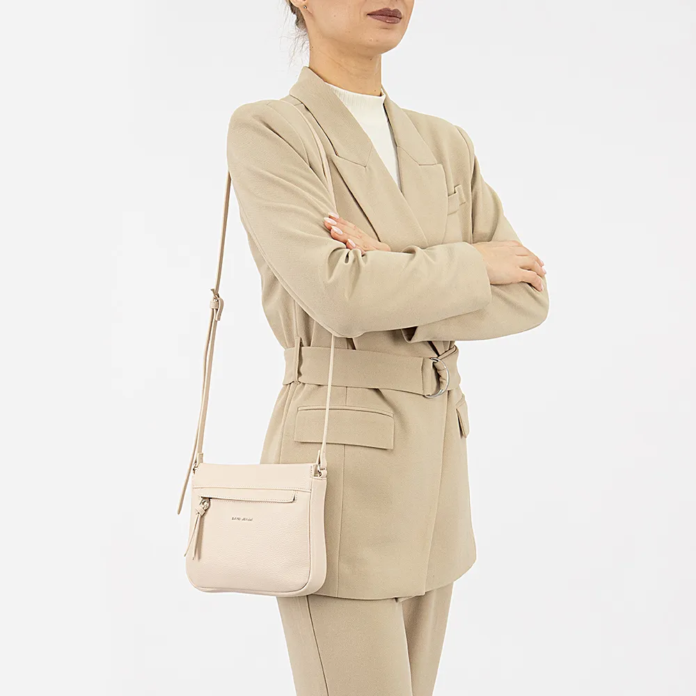 Сумка от торговой марки David Jones из искусственной кожи черного цвета. Плоская модель со съемным регулируемым плечевым ремнем. Отделение на молнии. Внутри: фирменная подкладка, карман на молнии, накладной карман. На лицевой и задней сторонах – карман на молнии.