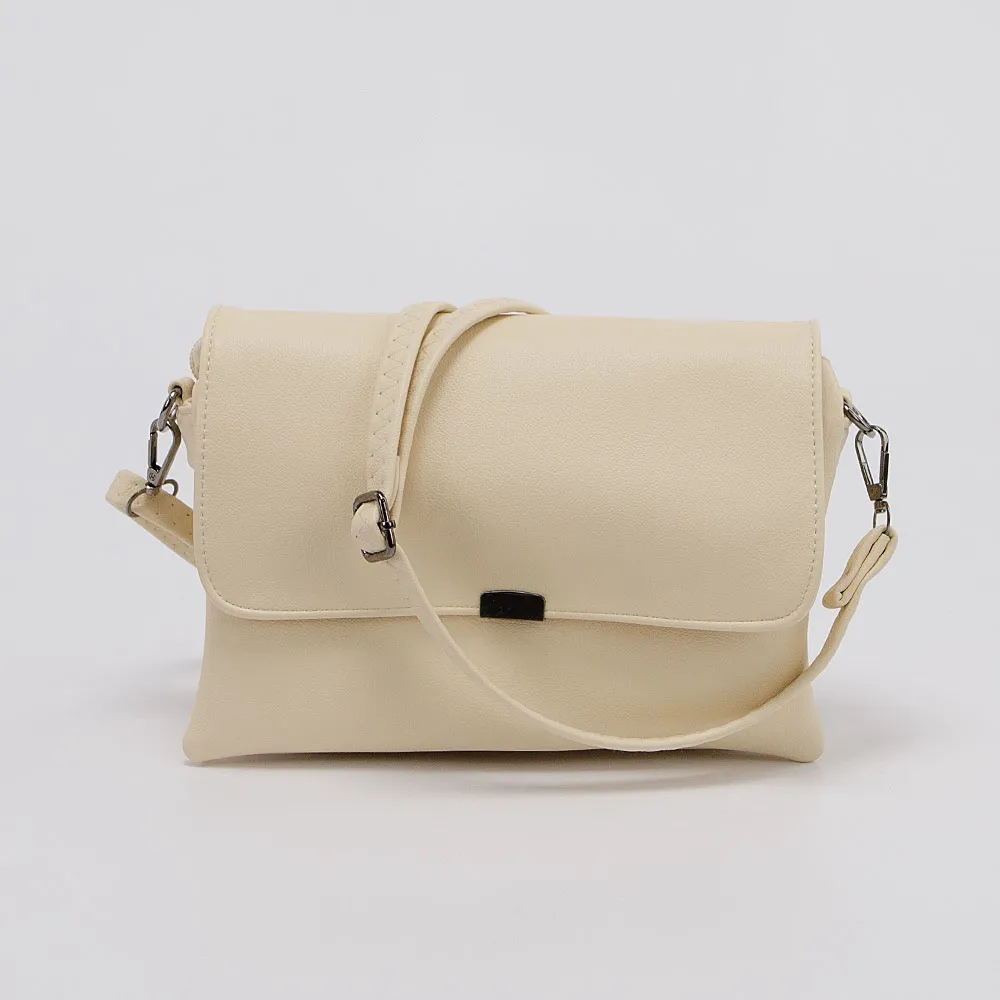 Сумка от торговой марки Passo Avanti из искусственной кожи бежевого цвета. Модель со съемным регулируемым плечевым ремнем. Закрывается клапаном на магнитной кнопке. Отделение на молнии. Внутри: 5 отсеков, три из которых с текстильной подкладкой; средний отсек на молнии, в переднем – накладной карман. На задней стороне – карман на молнии.
