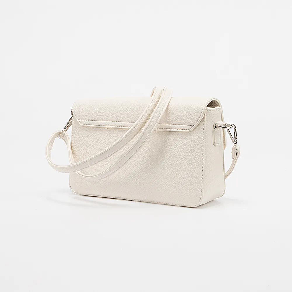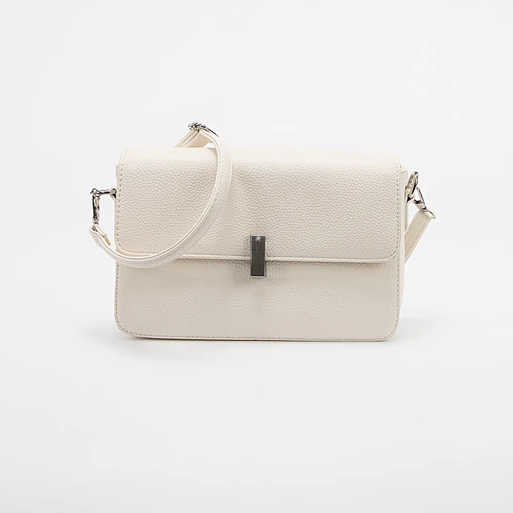 Сумка от торговой марки Passo Avanti из искусственной кожи бежевого цвета. Модель со съемным регулируемым плечевым ремнем. Закрывается клапаном на поворотном замке. Отделение на молнии. Внутри: текстильная подкладка, карман на молнии, накладной карман.