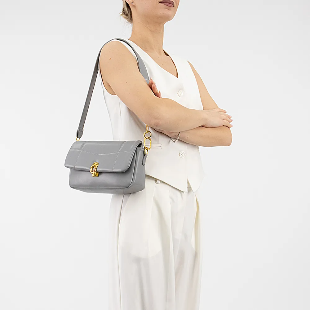 Сумка от торговой марки Passo Avanti из искусственной кожи голубого цвета. Декорирована волнообразной отстрочкой. Модель с удлиненной съемной ручкой-цепочкой и съемным регулируемым плечевым ремнем. Закрывается клапаном на поворотном замке с оригинальным изящным золотистым декором. Отделение на молнии. Внутри: текстильная подкладка, накладной карман.