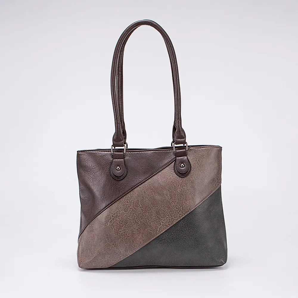 Сумка от торговой марки Passo Avanti из искусственной кожи в оттенках коричневого цвета. Лицевая сторона декорирована вставками. Вместительная модель с двумя удлиненными ручками. Два отделения на молнии, с текстильной подкладкой. В заднем отделении – карман на молнии, в переднем – накладной карман. На задней стороне – карман на молнии.