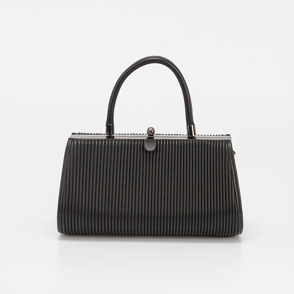 Сумка от торговой марки Marzia выполнена из искусственной кожи черного цвета. Модель с ручкой и съемным регулируемым плечевым ремнем, имеет рамочный вид закрытия. Отделение на откидном замке. Внутри: текстильная подкладка, карман и средник на молнии. Дно оснащено металлическими ножками для защиты от износа.