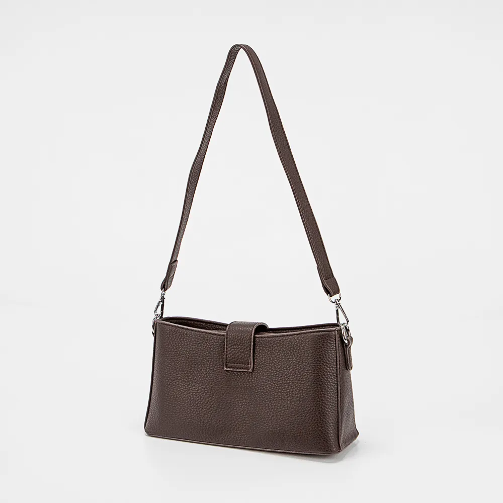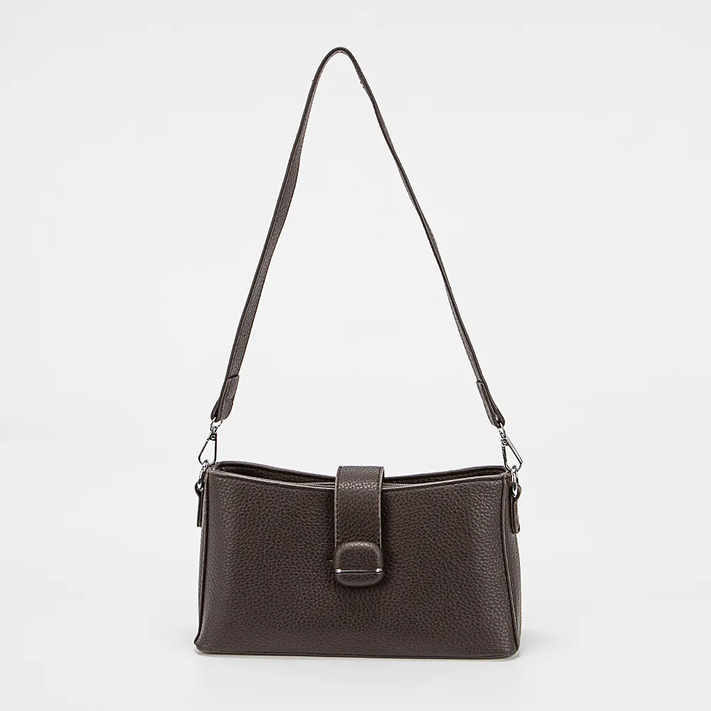Сумка от торговой марки Passo Avanti из искусственной кожи кофейного цвета. Модель с удлиненной съемной ручкой, съемным регулируемым плечевым ремнем. Закрывается хлястиком на магнитной кнопке. Отделение на молнии. Внутри: текстильная подкладка, карман на молнии.