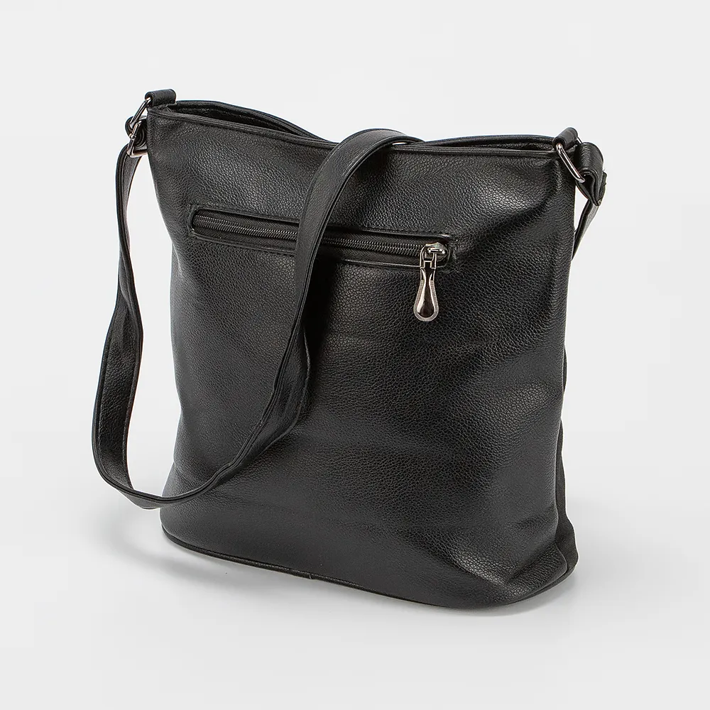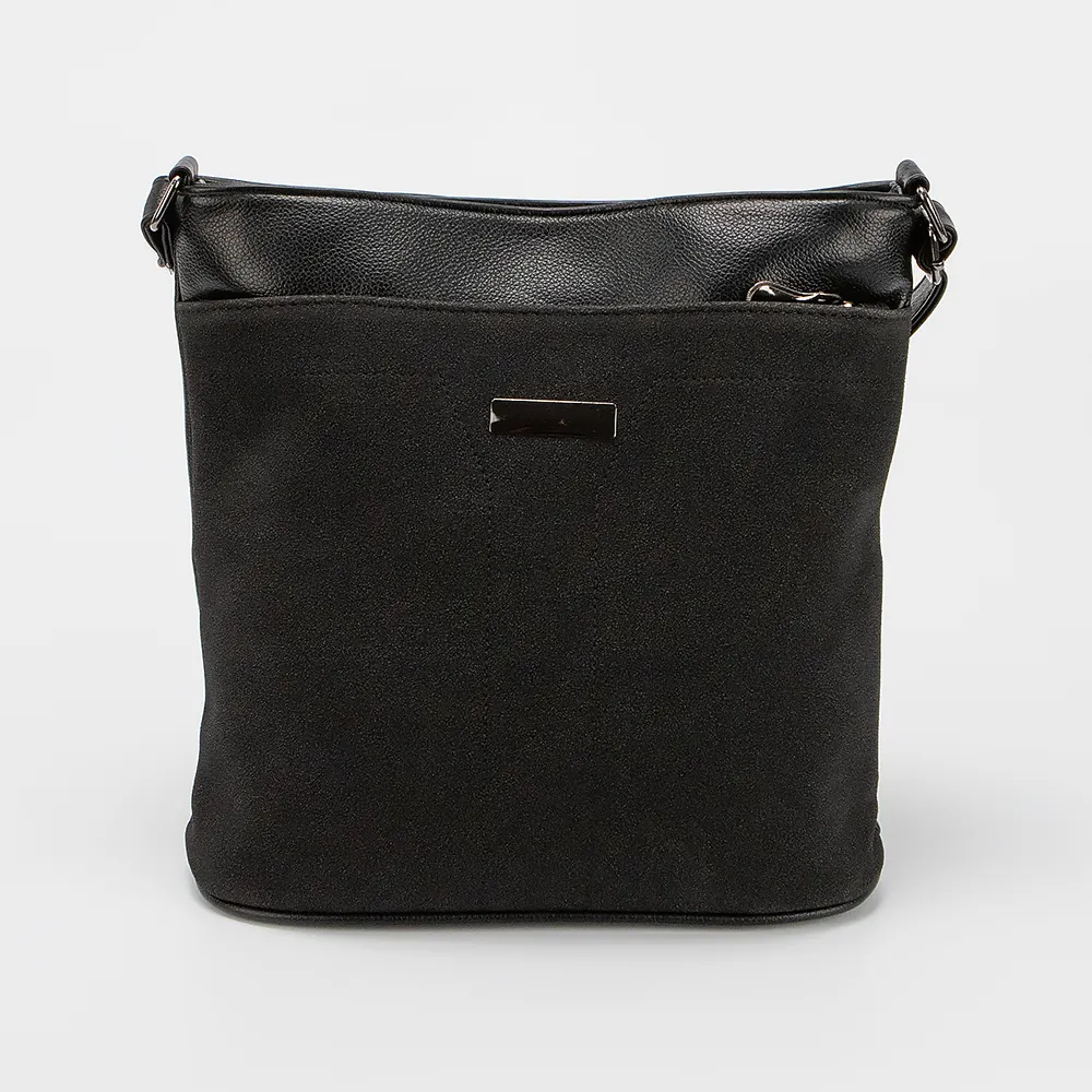 Сумка от торговой марки Passo Avanti из искусственной кожи и замши. Модель с несъемным регулируемым плечевым ремнем. Два отделения на молнии, с текстильной подкладкой; в одном из них – карман на молнии, в другом – накладной карман. На лицевой и задней стороне – карман на молнии.