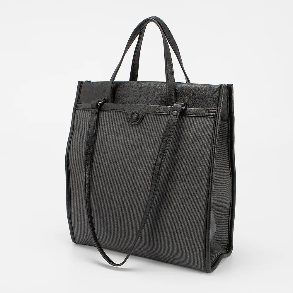 Сумка от торговой марки David Jones из искусственной кожи черного цвета. Модель вертикальной ориентации с двумя короткими и двумя удлиненными ручками. Отделение на молнии. Внутри: карман на молнии и накладной карман с хлястиком на кнопке. На лицевой и задней сторонах – вместительный накладной карман на магнитной кнопке. Дно оснащено металлическими ножками для защиты от износа.