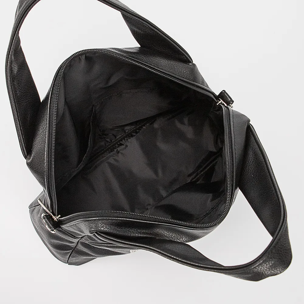 Сумка от торговой марки Passo Avanti из искусственной кожи кофейного цвета. Модель с двумя широкими ручками и съемным регулируемым плечевым ремнем. Отделение на молнии. Внутри: карман на молнии, два накладных кармана. На задней стороне – карман на молнии.
