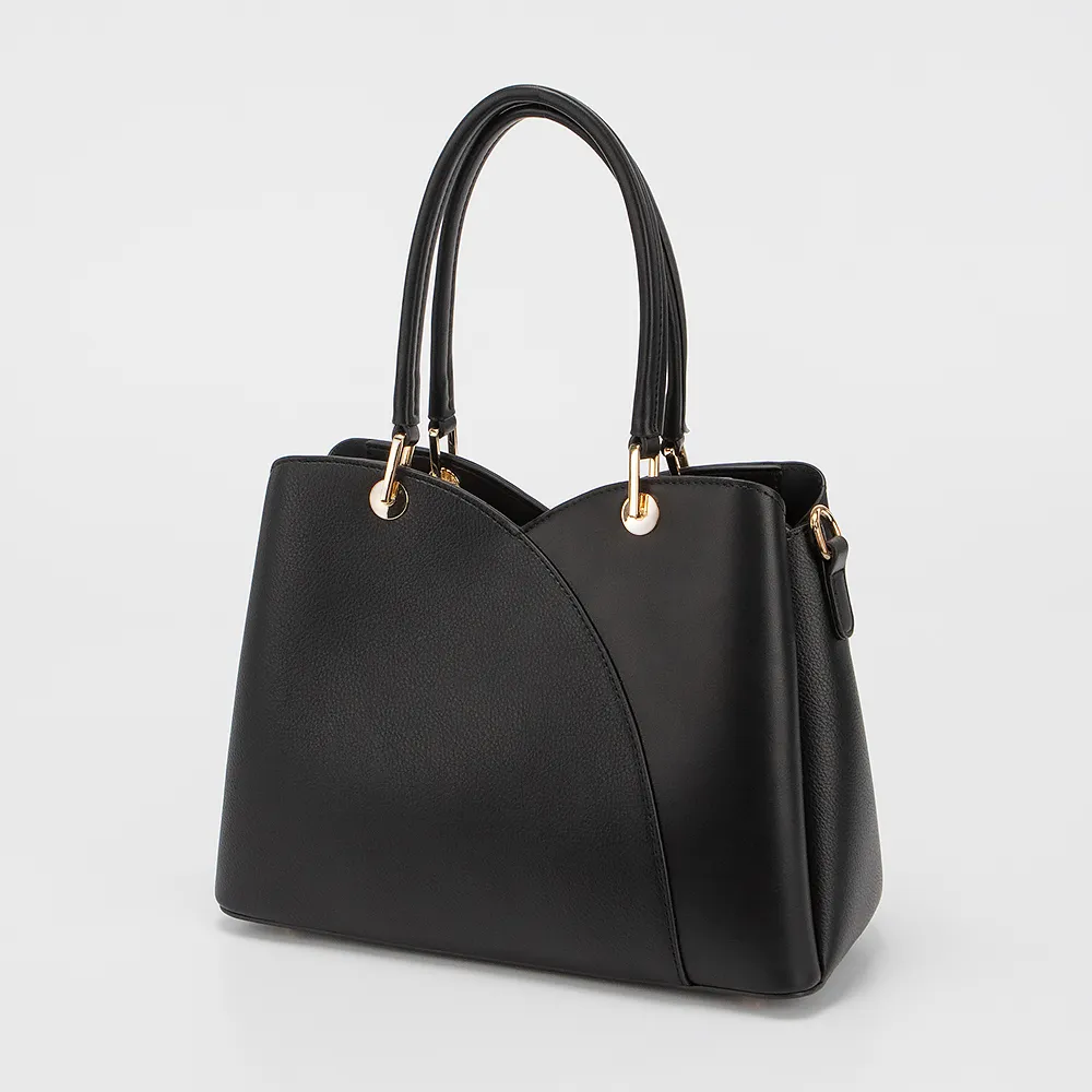 Сумка от торговой марки David Jones из искусственной кожи черного цвета. Модель с двумя ручками и съемным регулируемым плечевым ремнем. Отделение на молнии. Внутри: фирменная подкладка, карман на молнии, накладной карман. Спереди и сзади карманы на магнитной кнопке. Дно оснащено металлическими ножками для защиты от износа.