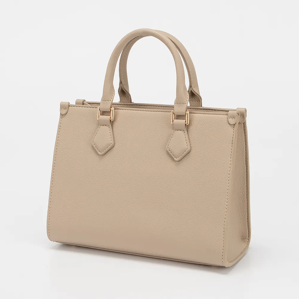 Сумка от торговой марки David Jones из искусственной кожи бежевого цвета. Модель с двумя ручками и съемным регулируемым плечевым ремнем. Отделение на молнии. Внутри: фирменная подкладка, карман на молнии и накладной карман. Спереди и сзади карман на магнитной кнопке. Дно оснащено металлическими ножками для защиты от износа.
