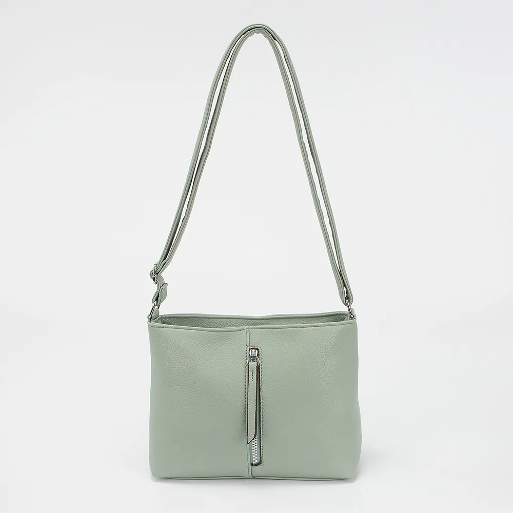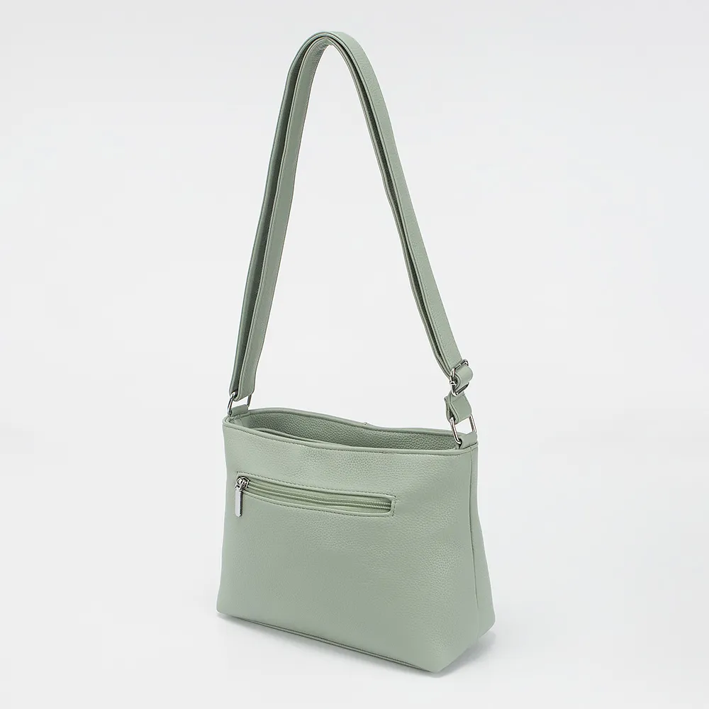 Сумка от торговой марки Passo Avanti из искусственной кожи зеленого цвета. Модель с несъемным регулируемым плечевым ремнем. Два отделения на молнии, с текстильной подкладкой. В заднем отделении - карман на молнии, в переднем - накладной карман. На лицевой стороне - вертикальный карман на молнии. На задней стороне - карман на молнии.