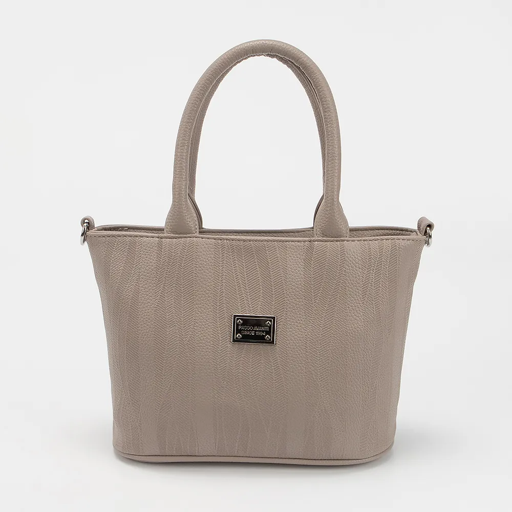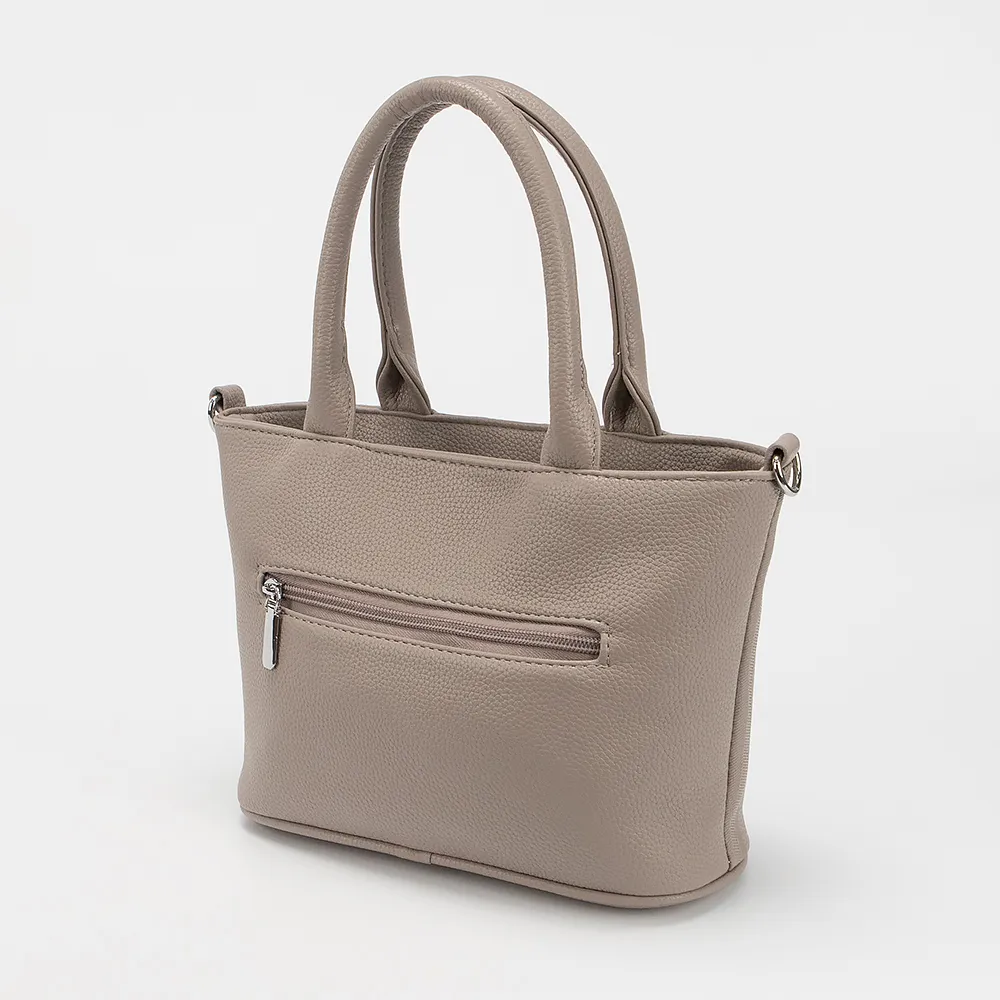 Сумка от торговой марки Passo Avanti из искусственной кожи кофейного цвета. Модель с двумя удлиненными ручками и съемным регулируемым плечевым ремнем. Два отделения на молнии. Внутри: текстильная подкладка, карман на молнии,накладной карман. На задней стороне - карман на молнии.