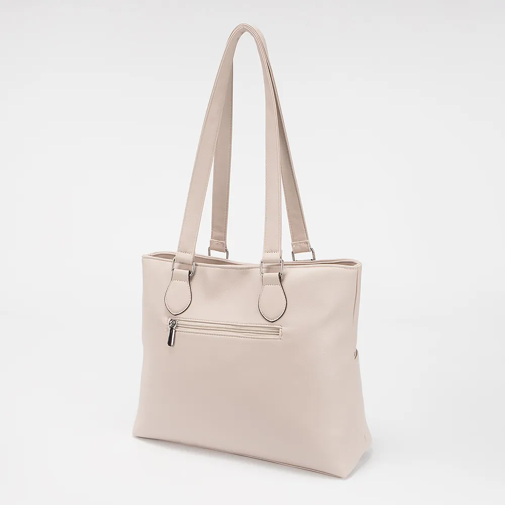 Сумка от торговой марки Passo Avanti из искусственной кожи бежевого цвета. Лицевая сторона декорирована вставками коричневого и белого цвета. Модель с двумя ручками. Два отделения на молнии, с текстильной подкладкой. В заднем отделении - карман на молнии, в переднем - накладной карман. На лицевой стороне - вместительный карман на молнии. На задней стороне - карман на молнии.