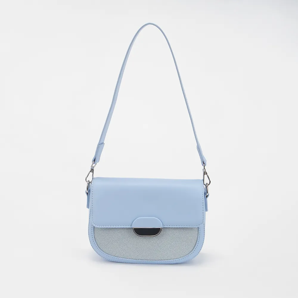 Сумка от торговой марки Passo Avanti из искусственной кожи голубого цвета. Модель с длинной съемной ручкой и съемным регулируемым плечевым ремнем. Закрывается клапаном на магнитной кнопке. Отделение на молнии, внутри текстильная подкладка.