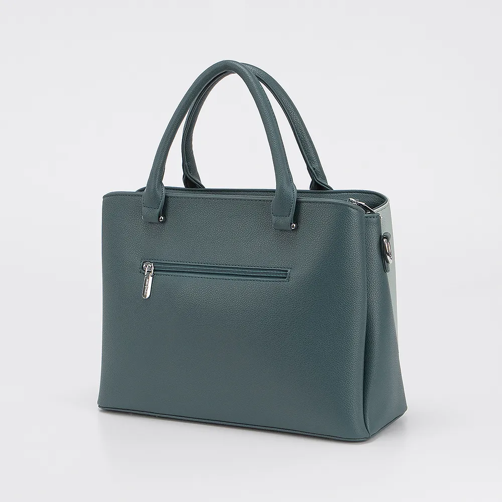 Сумка от торговой марки Passо Avanti из искусственной кожи голубого цвета. Модель с двумя ручками и съемным регулируемым плечевым ремнем, декорирована вставками контрастного цвета. Отделение на молнии закрывает три отсека. Внутри: текстильная подкладка, карман на молнии, накладной карман. На задней стороне - карман на молнии. Дно оснащено металлическими ножками для защиты от износа.