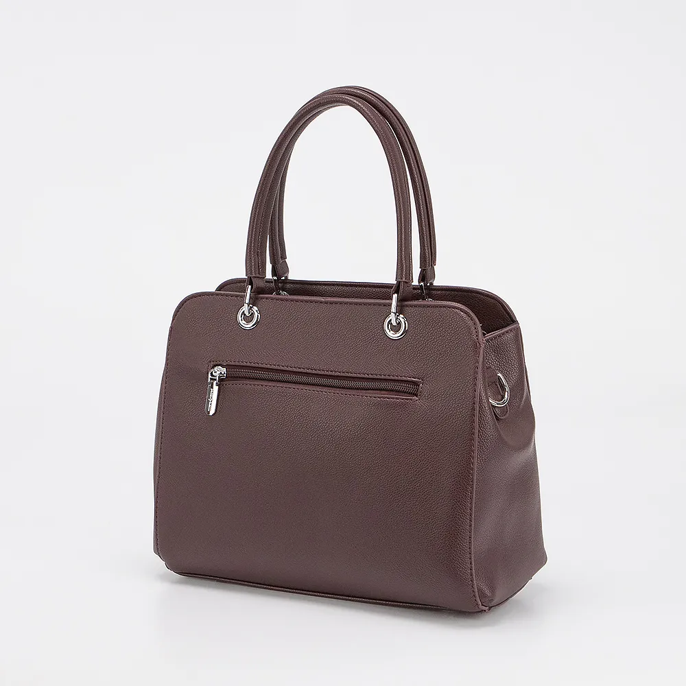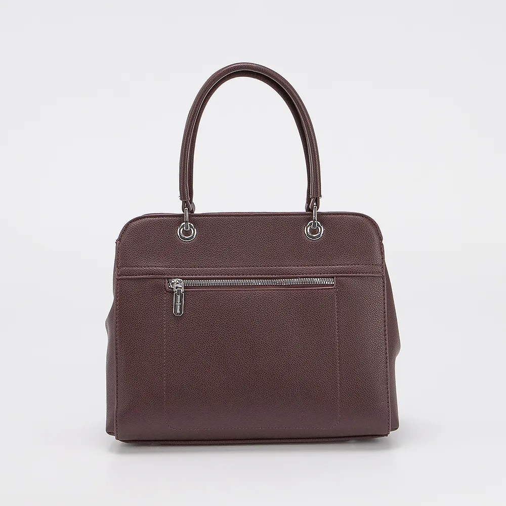 Сумка от торговой марки Passo Avanti из искусственной кожи коричневого цвета. Модель с двумя ручками и съемным регулируемым плечевым ремнем. Отделение на молнии: текстильная подкладка, средник и карман на молнии, два накладных кармана. На лицевой стороне и задней сторонах - карман на молнии. Дно оснащено металлическими ножками для защиты от износа.