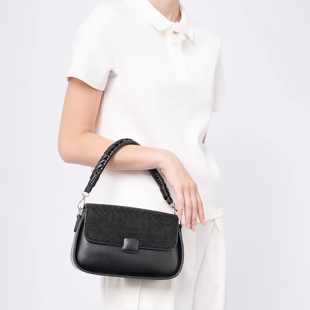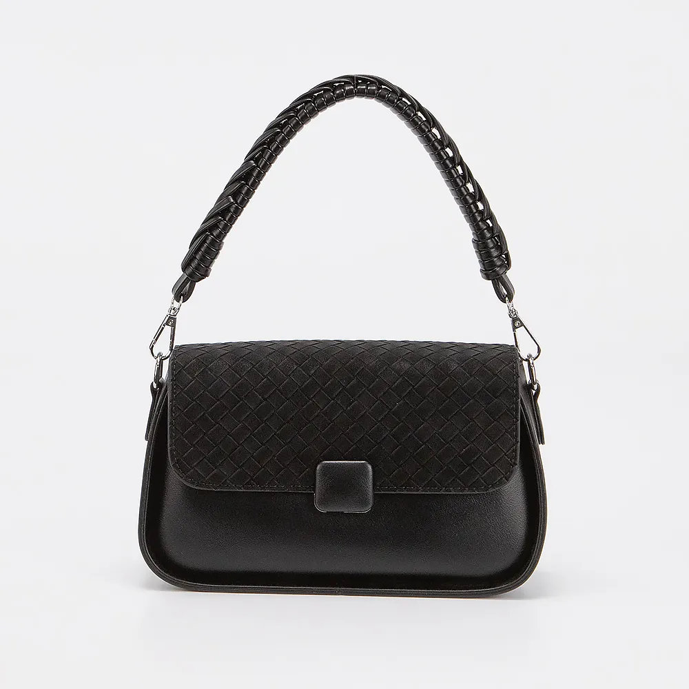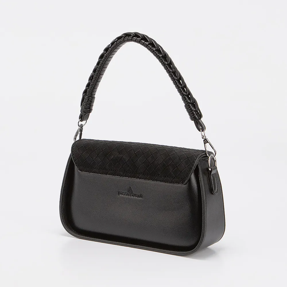 Сумка от торговой марки Passo Avanti выполнена из искусственной кожи черного цвета. Модель с длинной съемной ручкой, декорированной плетением и съемным регулируемым плечевым ремнем. Клапан на магнитной кнопке закрывает отделение на молнии. Внутри: текстильная подкладка, карман на молнии, накладной карман.