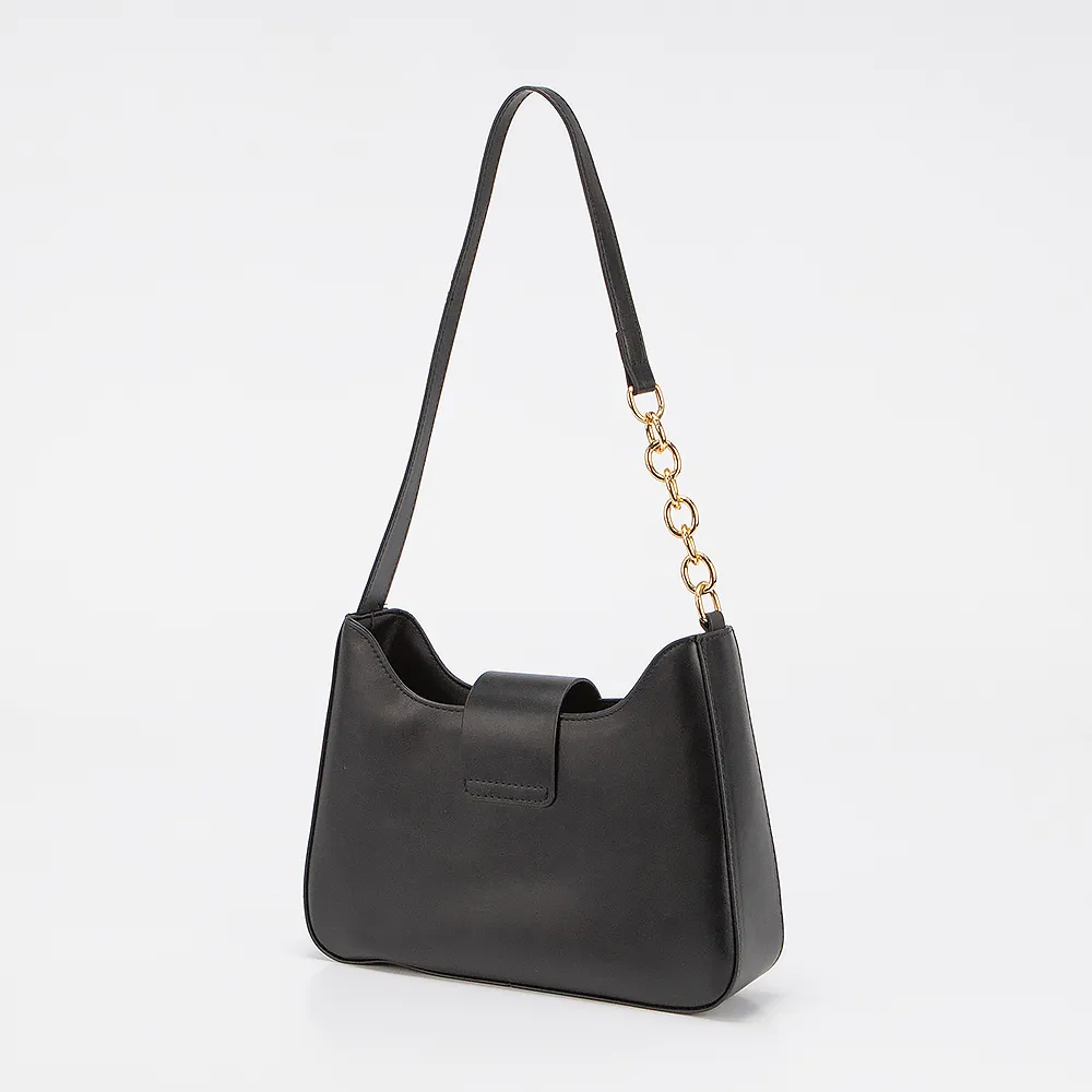 Сумка от торговой марки Passo Avanti выполнена из искусственной кожи черного цвета. Модель с длинной ручкой-цепочкой. Отделение на молнии, дополнительно фиксируется клапаном на магнитной кнопке. Внутри: текстильная подкладка, карман на молнии, накладной карман.