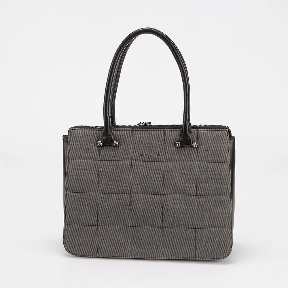 Сумка от торговой марки Passo Avanti выполнена из искусственной кожи черного цвета. Модель с двумя удлиненными ручками. Декорирована стежкой. Отделение на молнии. Внутри: текстильная подкладка.