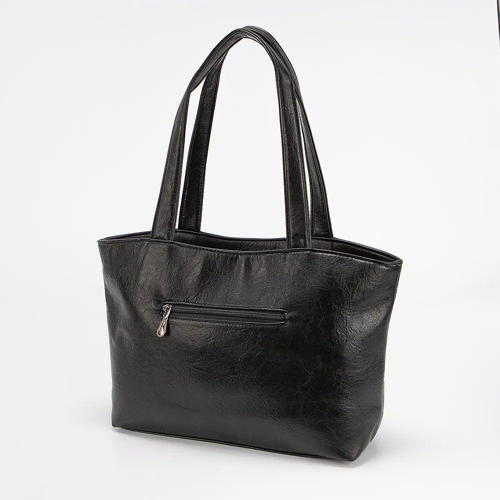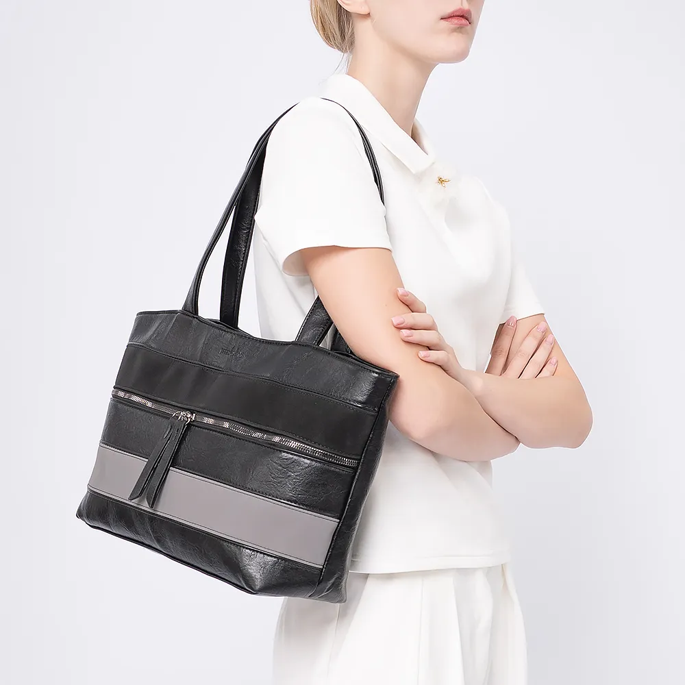 Сумка от торговой марки Passo Avanti из искусственной кожи в сочетании черного и серого цвета. Модель с двумя ручками. Два отделения на молнии. Внутри: текстильная подкладка, карман на молнии, накладной карман. На лицевой и задней стороне - карман на молнии.