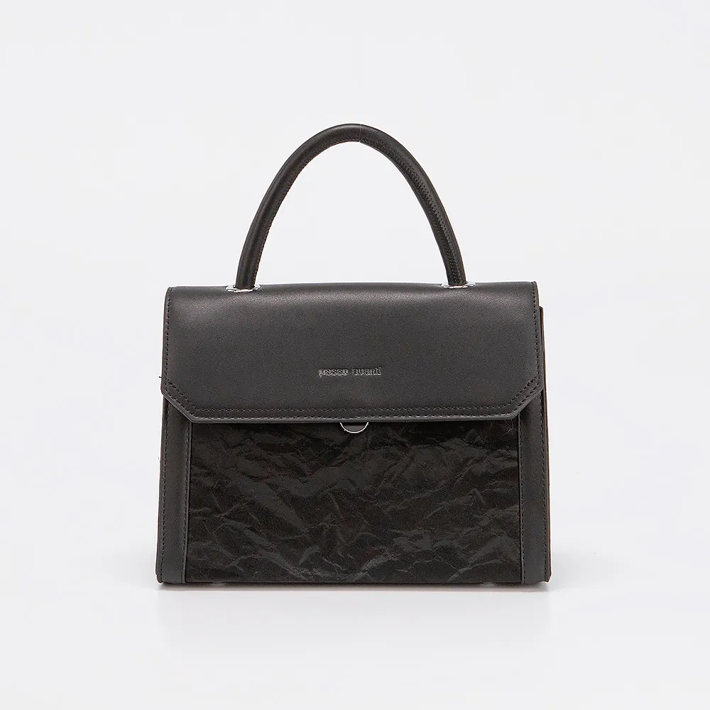 Сумка от торговой марки Passo Avanti выполнена из искусственной кожи черного цвета. Модель с ручкой и съемным регулируемым плечевым ремнем. Клапан на магнитной кнопке закрывает отделение на молнии. Внутри: текстильная подкладка, карман на молнии, накладной карман. Дно оснащено металлическими ножками для защиты от износа.