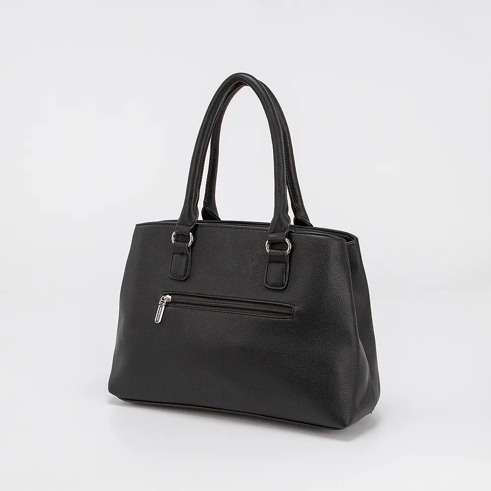 Сумка от торговой марки Passo Avanti выполнена из искусственной кожи черного цвета. Модель с двумя ручками. Два отделения на молнии. Внутри: текстильная подкладка, карман на молнии, накладной карман. С задней стороны - карман на молнии. На лицевой стороне - карман на магнитной кнопке.