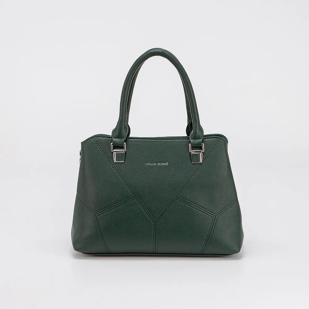 Сумка от торговой марки Passo Avanti выполнена из искусственной кожи зеленого цвета. Модель с двумя ручками и съемным регулируемым плечевым ремнем. Отделение на молнии. Внутри: текстильная подкладка, карман и средник на молнии, накладной карман. С задней стороны - карман на молнии.