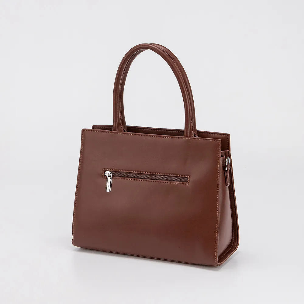 Сумка от торговой марки Passo Avanti выполнена из искусственной кожи коричневого цвета с контрастной вставкой и вставкой с тиснением под рептилию. Модель с двумя ручками и съемным регулируемым плечевым ремнем. Отделение на молнии. Внутри: текстильная подкладка, карман на молнии, накладной карман. С задней стороны - карман на молнии. Дно оснащено металлическими ножками для защиты от износа.