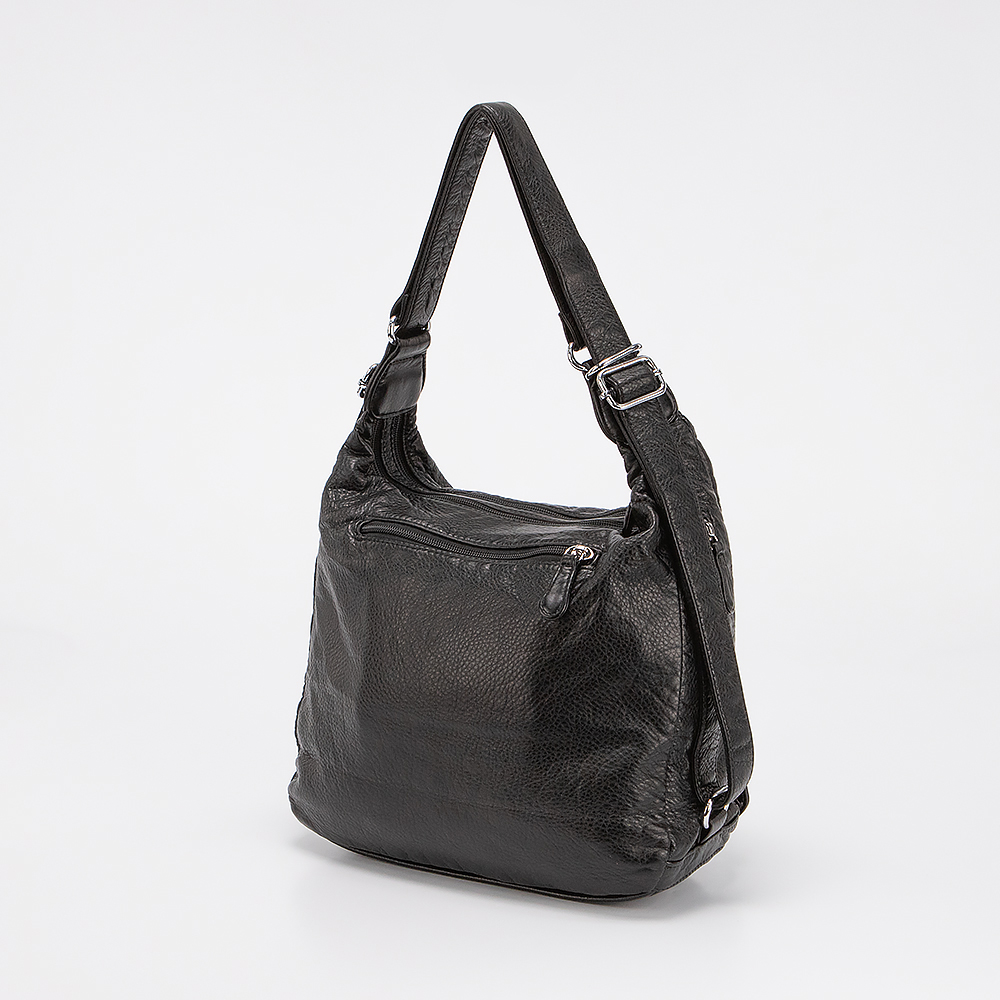 Сумка-рюкзак от торговой марки Passo Avanti выполнен из искусственной кожи черного цвета. Модель с удлиненной ручкой, которая стягивается в плечевые лямки. Отделение на молнии. Внутри: текстильная подкладка. С лицевой стороны четыре кармана на молнии.