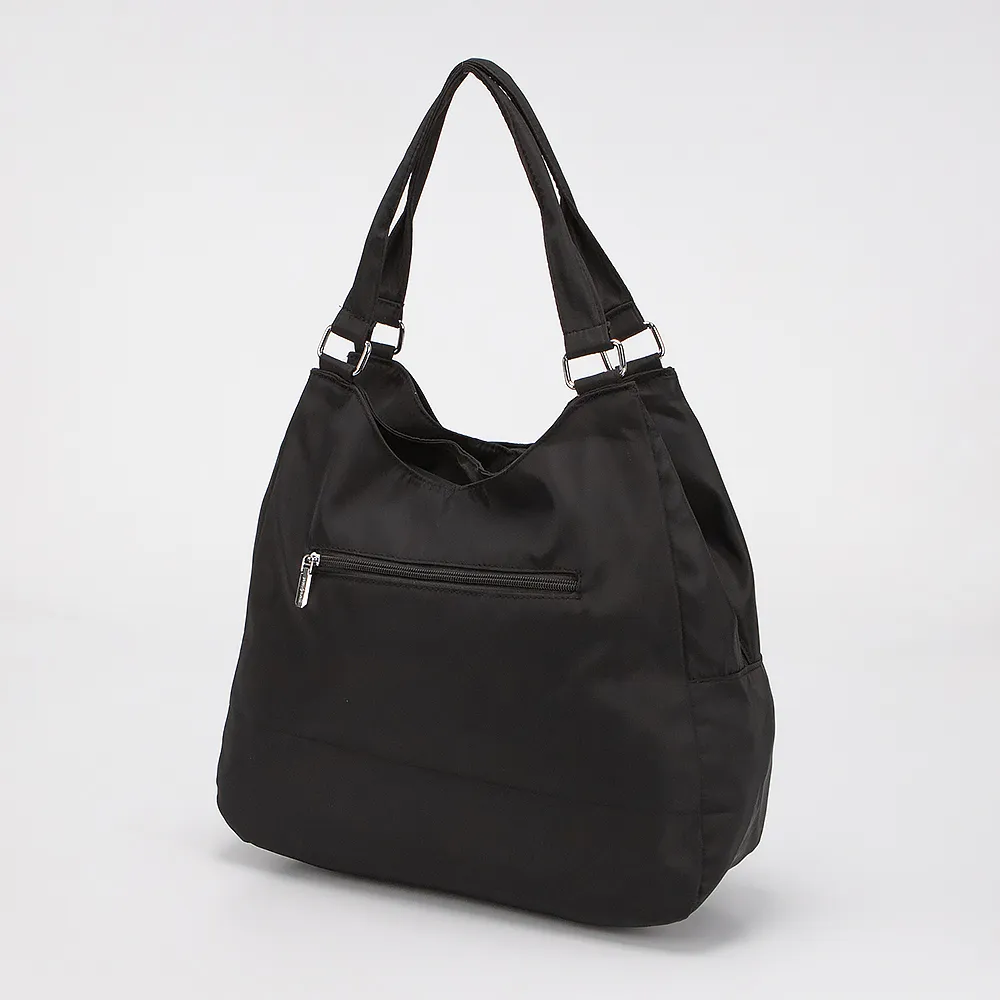 Сумка от торговой марки Passo Avanti выполнена из текстильного материала черного цвета. Модель с удлиненной ручкой. Два отделения на молнии. Внутри: текстильная подкладка, карман на молнии, накладной карман. На задней стороне - карман на молнии.