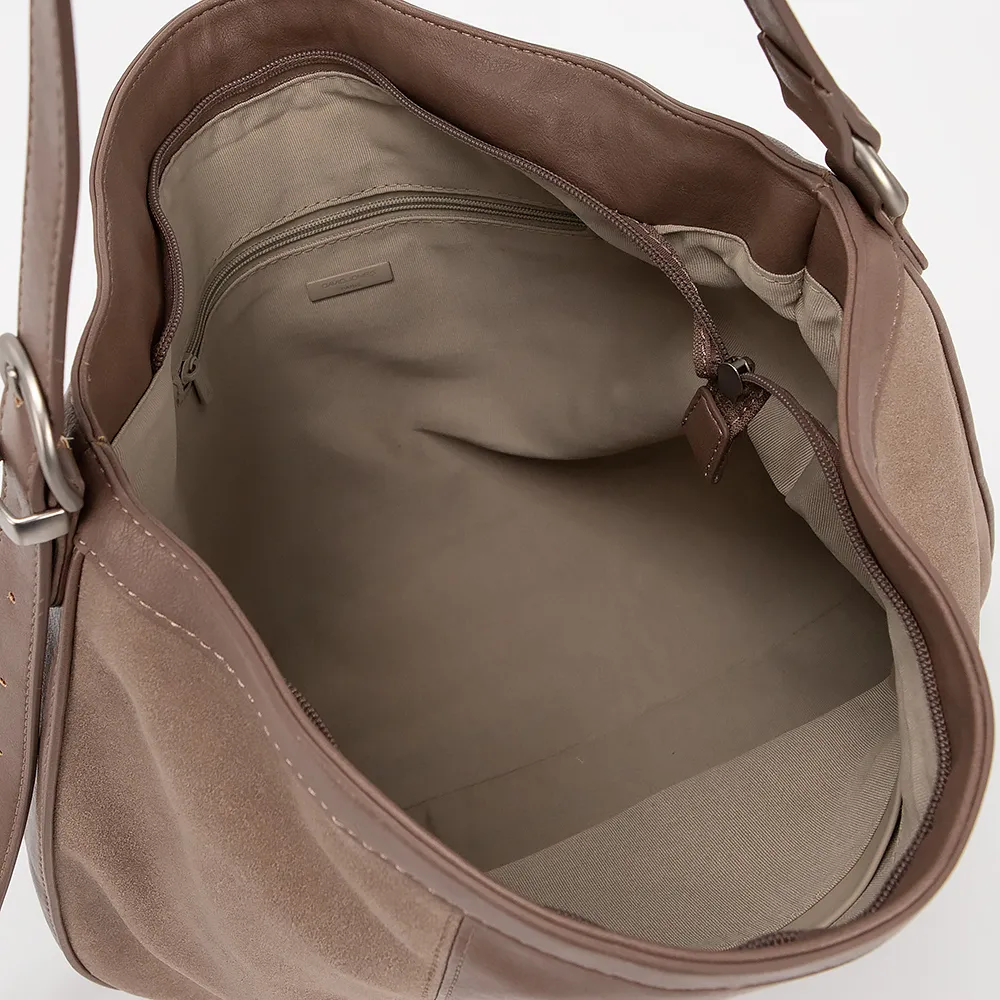 Сумка от торговой марки David Jones выполнена из искусственной кожи кофейного цвета. Модель с удлиненной регулируемой ручкой. Отделение на молнии. Внутри: текстильная подкладка, карман на молнии, накладной карман.