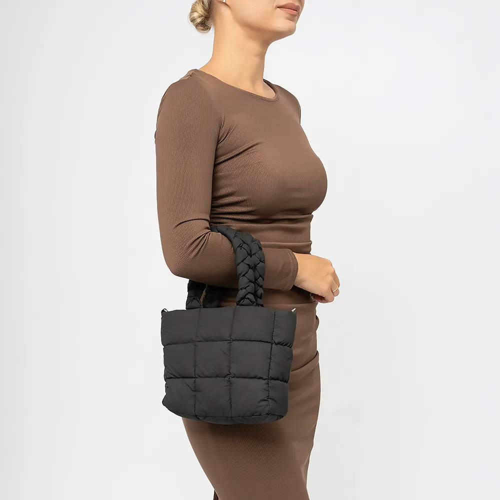 Сумка от торговой марки Passo Avanti выполнена из текстильного материала черного цвета. Модель с двумя плетеными ручками и съемным регулируемым плечевым ремнем. Декорирована стежкой. Отделение на молнии. Внутри: текстильная подкладка.