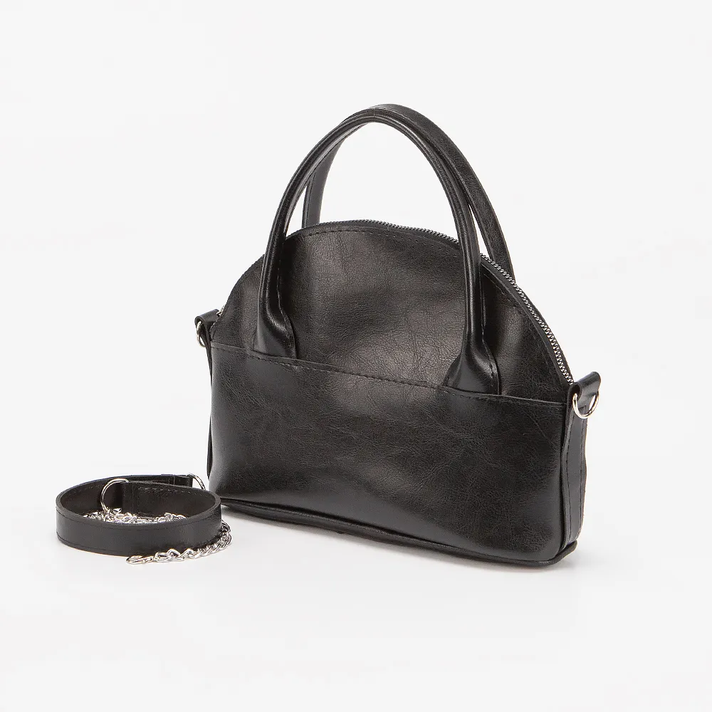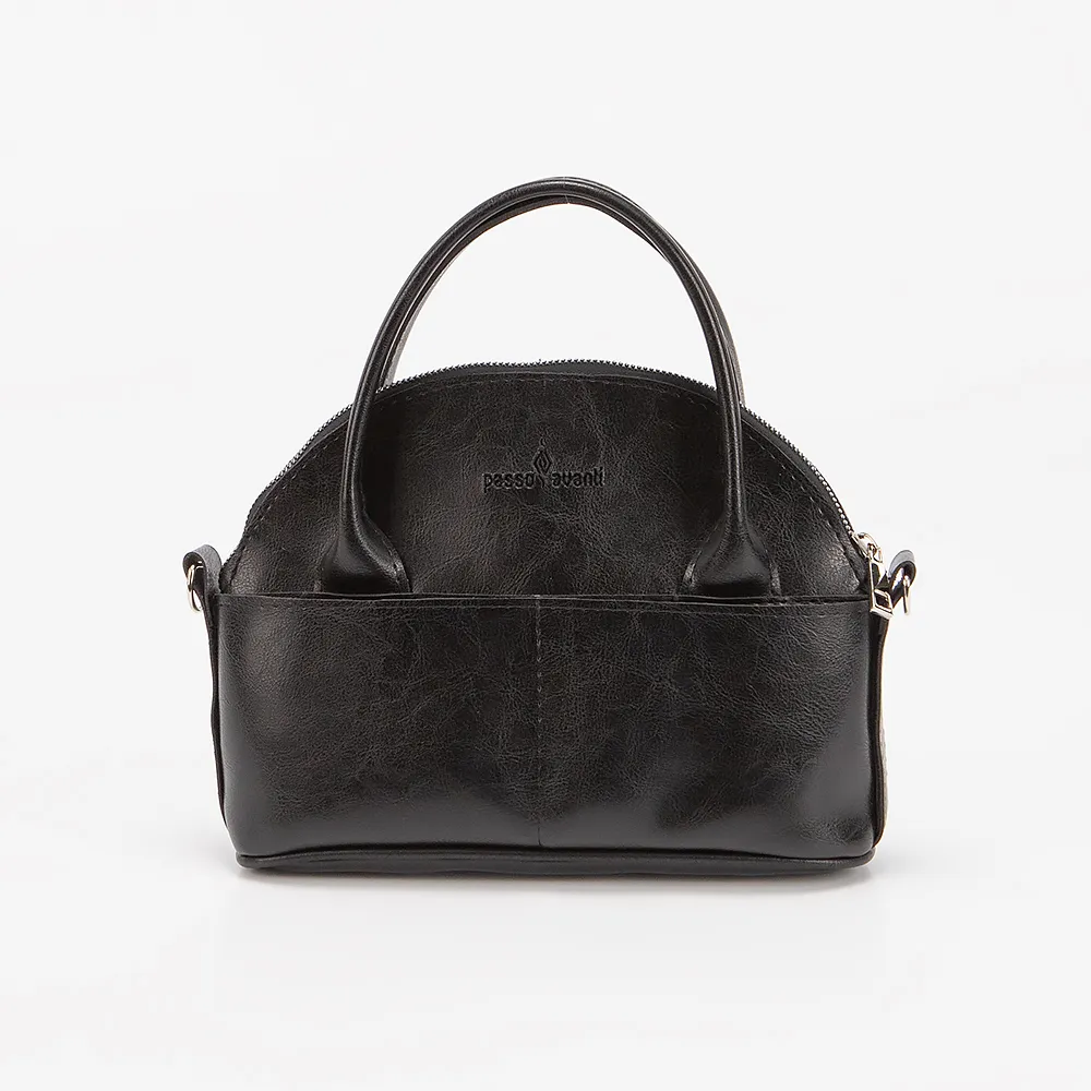 Сумка от торговой марки Passo Avanti выполнена из искусственной кожи черного цвета. Модель с двумя ручками и длинным регулируемым плечевым ремнем. Отделение на молнии. Внутри: текстильная подкладка, карман на молнии, накладной карман. На лицевой стороне - два накладных кармана.