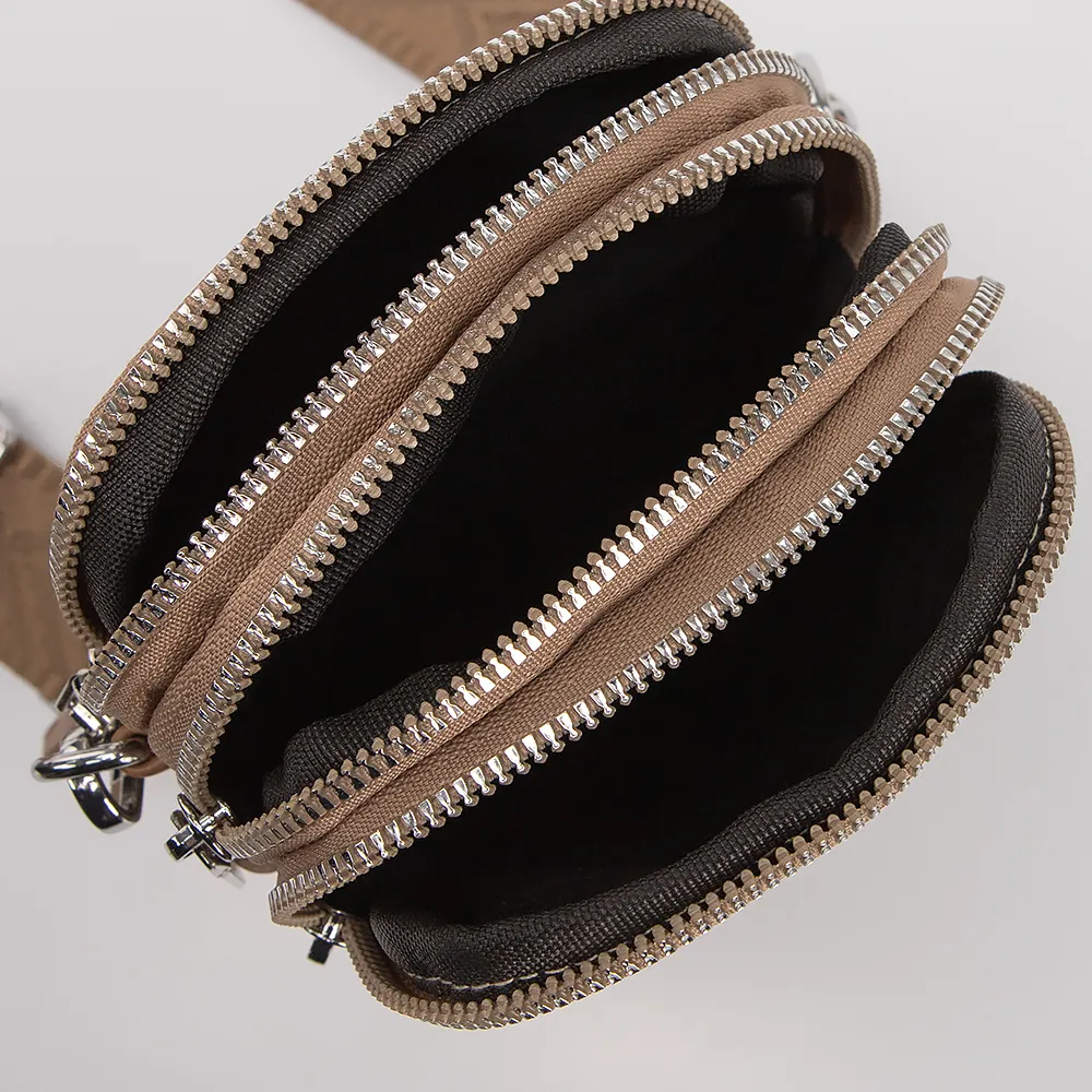 Сумка от торговой марки Valigetti выполнена из искусственной кожи бежевого цвета. Модель вертикальной ориентации с широким съемным плечевым ремнем. Три отделения на молнии. Внутри: текстильная подкладка. С лицевой стороны - карман на молнии.