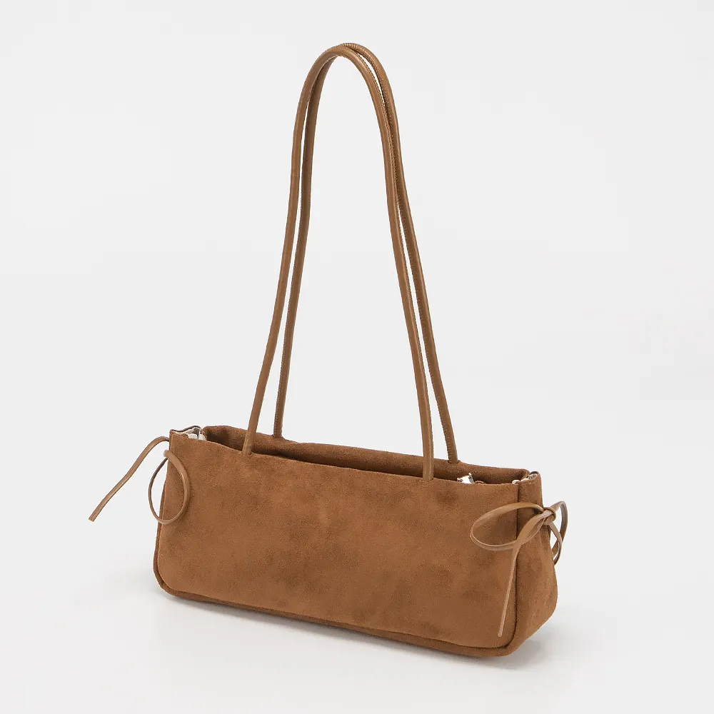 Сумка от торговой марки Valigetti выполнена из искусственной замши. Модель горизонтальной ориентации с двумя длинными ручками. Отделение на молнии с текстильной подкладкой.