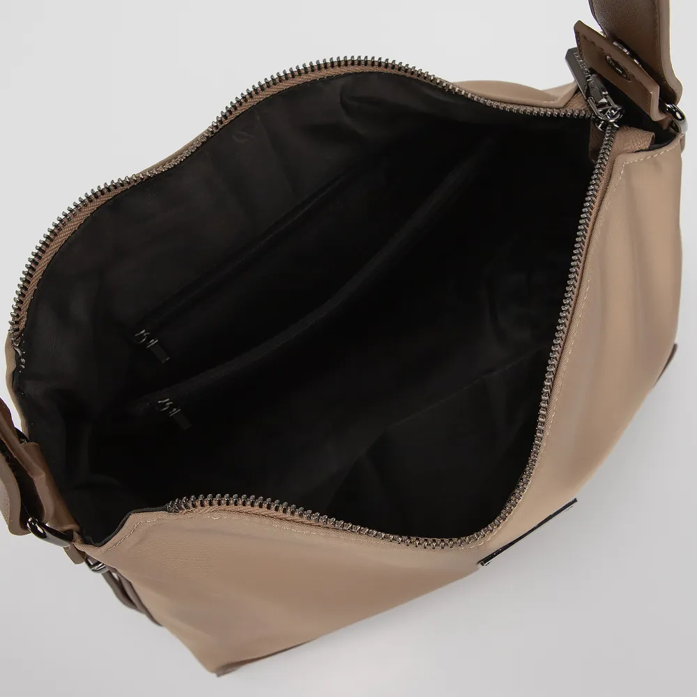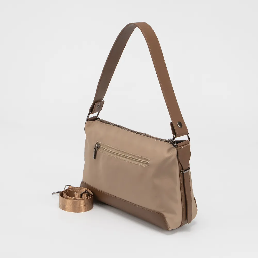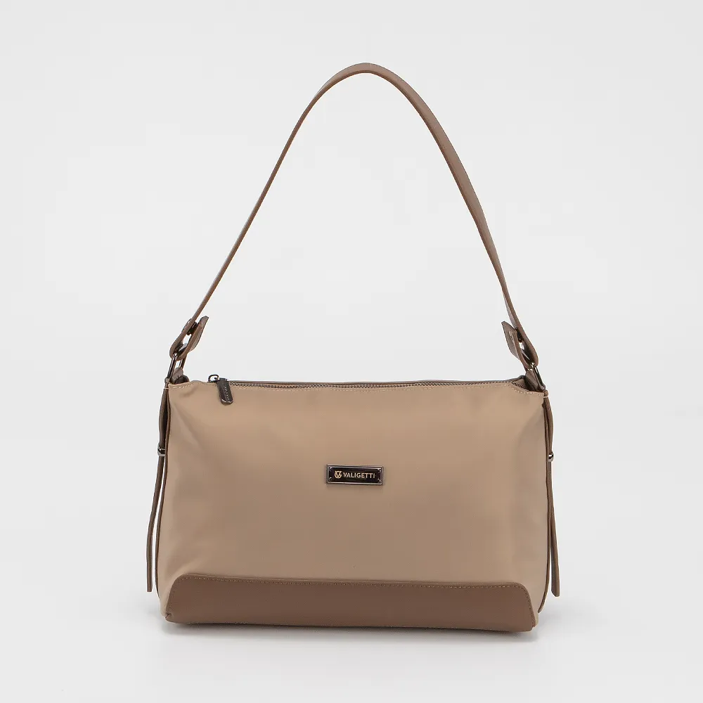 Сумка-планшет от торговой марки Valigetti выполнена из текстильного материала кофейного цвета. Модель с удлиненной ручкой и съемным регулируемым плечевым ремнем. Отделение на молнии. Внутри: текстильная подкладка, карман на молнии, накладной карман. На задней стороне - карман на молнии.