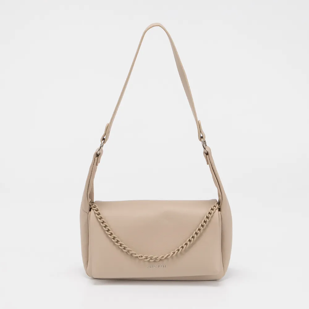 Сумка от торговой марки Valigetti выполнена из искусственной кожи кофейного цвета. Модель с коротким плечевым ремнем. Декорирована цепочкой. Клапан за магнитных кнопках закрывает отделение на молнии. Внутри: текстильная подкладка, карман на молнии, накладной карман.