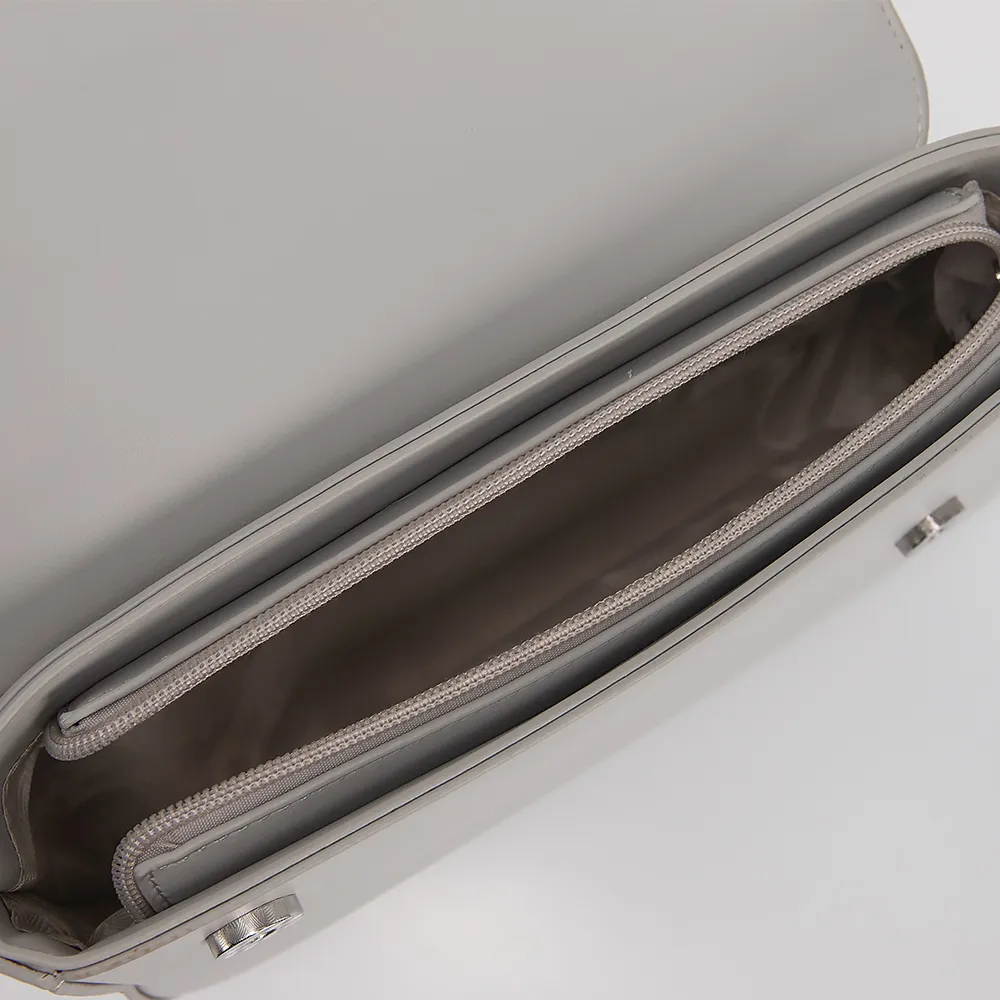 Сумка от торговой марки Valigetti выполнена из искусственной кожи серого цвета. Модель с ручкой и съемным регулируемым плечевым ремнем. Декорирована оригинальной металлической пряжкой. Клапан на магнитных кнопках закрывает отделение на молнии. Внутри: текстильная подкладка, карман на молнии, накладной карман.