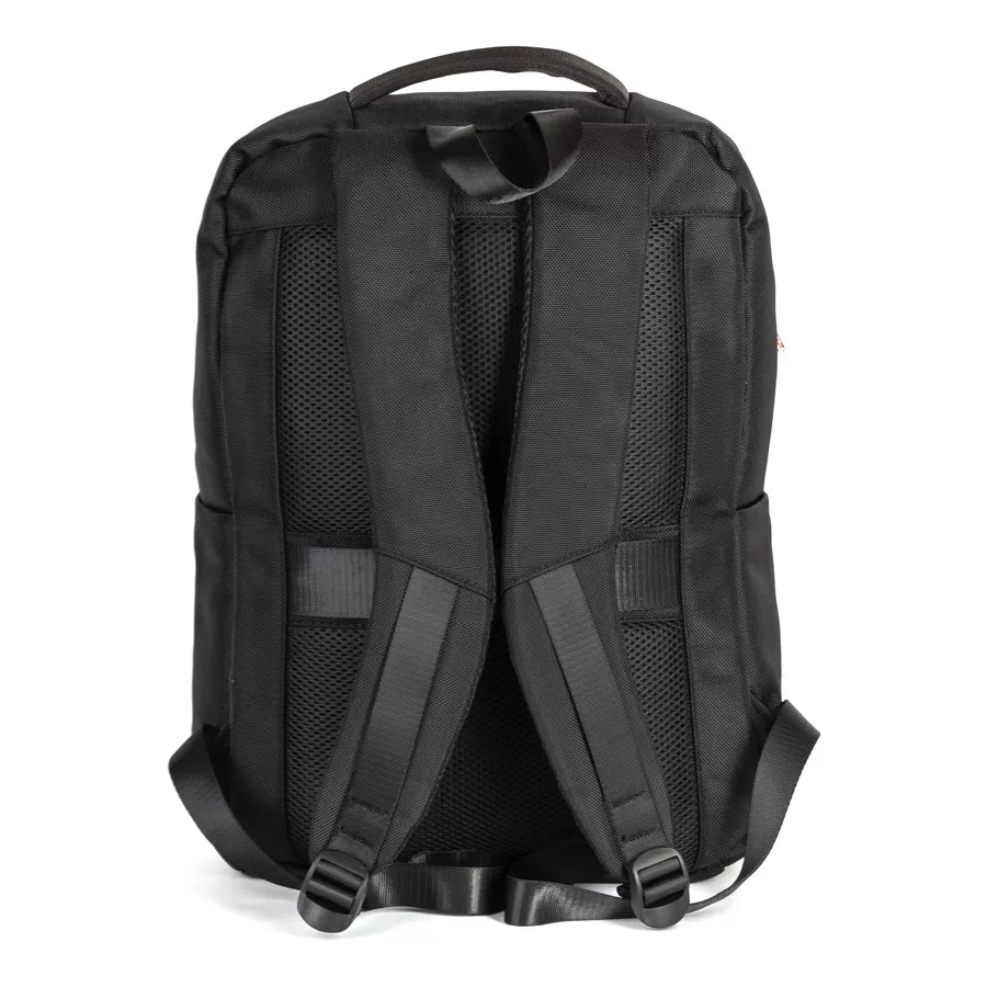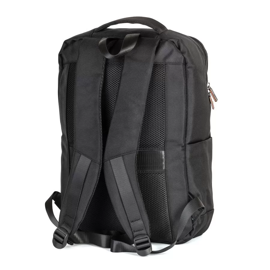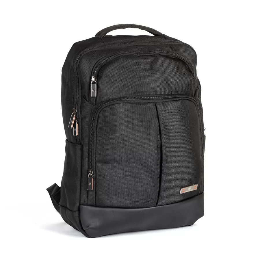 Рюкзак от торговой марки Valigetti из прочного практичного текстильного материала черного цвета. Модель с лямкой-переноской, регулируемыми плечевыми лямками. Одно отделение на молнии, с текстильной подкладкой. В основном отделении: два накладных кармана. На лицевой стороне – два кармана на молнии. По бокам – два кармана. Спинка с дышащим сетчатым верхним слоем и лямка для надевания на ручку чемодана.