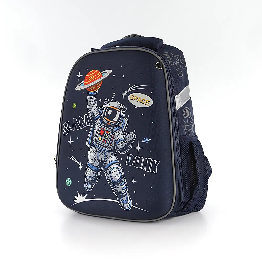 Ранец от торговой марки Ecotope из плотного текстильного материала. Декорирован рисунком с изображением космонавта со светоотражающими элементами. Модель с лямкой-переноской с пластиковой накладкой, мягкой набивной ручкой, регулируемыми плечевыми лямками с более износостойкой конструкцией в форме майки со светоотражателями, повышающими безопасность в темное время. Ортопедическая спинка с анатомическими вставками с верхним дышащим слоем. Два отделения на молнии, с текстильной подкладкой. В основном отделении – накладной карман и фиксирующая резинка. По бокам – карман-сетка. На лицевой стороне – кольцо для крепления брелока.