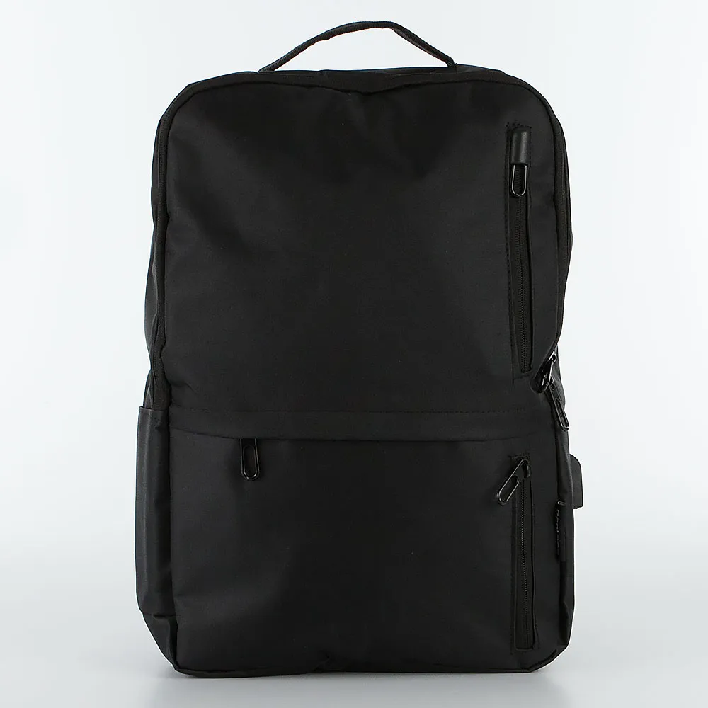 Рюкзак от торговой марки Ecotope из текстильного материала черного цвета. Модель с одной ручкой, лямкой-переноской, широкими регулируемыми плечевыми лямками с дышащим сетчатым верхним слоем. Отделение на молнии. Внутри: текстильная подкладка, накладной карман с уплотненной стенкой для ноутбука. На лицевой стороне – три кармана на молнии. По бокам – карман без застежки, встроенный USB-порт обеспечивает удобное соединение для подзарядки аккумуляторов мобильных устройств от внешнего источника питания.