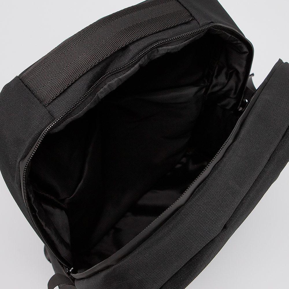 Рюкзак от торговой марки Valigetti выполнен из плотного текстильного материала черного цвета. Модель с ручкой для переноски и регулируемыми плечевыми ремнями. Отделение на молнии, дополнительно фиксируется ремешками на застежке фастекс по бокам. Внутри: вместительный накладной карман, карман на молнии. На лицевой стороне - карман на молнии. По бокам - объемный карман на молнии. На задней стороне - лямка для крепления на выдвижную ручку чемодана.