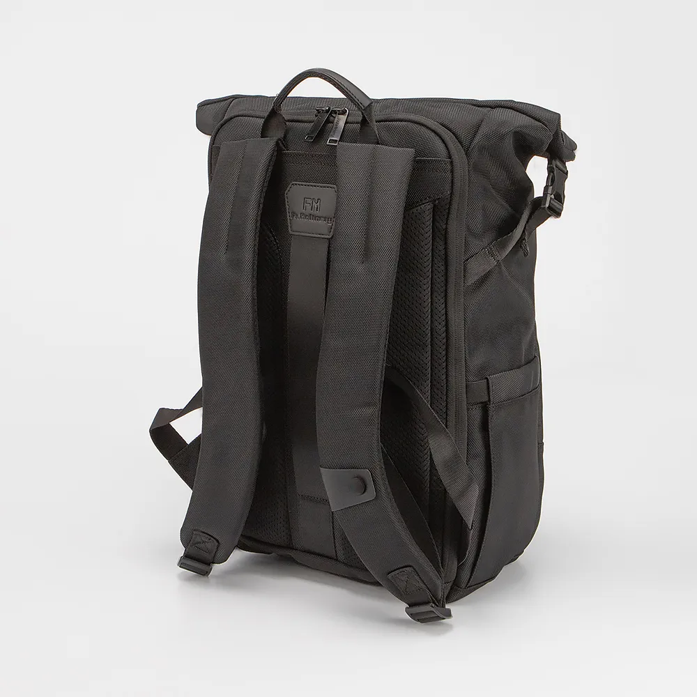 Рюкзак от торговой марки Francesco Molinary выполнен из плотного практичного текстильного материала черного цвета. Модель с ручкой и регулируемыми плечевыми ремнями. Основное отделение на молнии, дополнительно фиксируется ремнями на застежке фастекс. Второе отделение на молнии, раскрывается по трем сторонам. Внутри: текстильная подкладка, карман с уплотненной стенкой для ноутбука, накладные карманы. С лицевой стороны - карман на молнии. По бокам - карман без застежки. На задней стороне - вертикальная лямка для крепления на выдвижную ручку чемодана.
