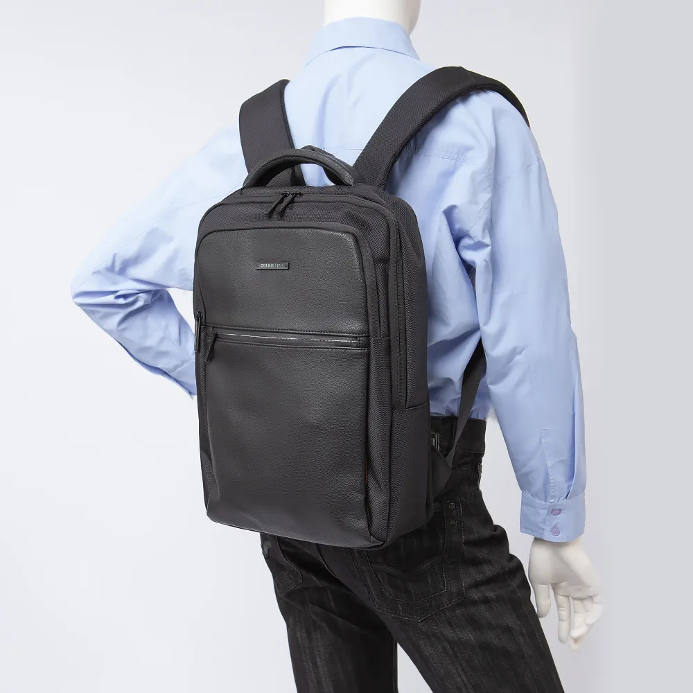 Рюкзак от торговой марки C.Life выполнен из плотного текстильного материала черного цвета. Модель с ручкой для переноски и двумя регулируемыми плечевмыи ремнями. Два отделения на молнии. Внутри: текстильная подкладка, карман для ноутбука. На лицевой стороне - два кармана на молнии.