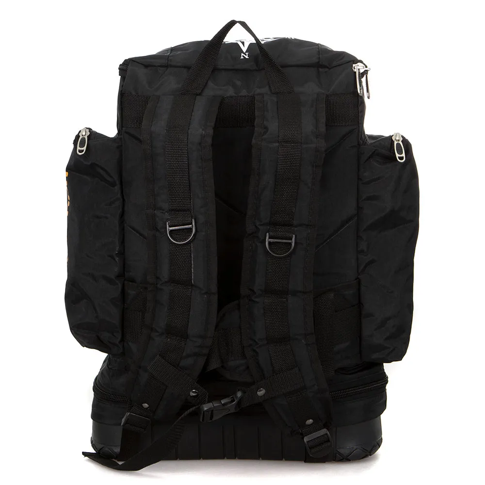 Туристический рюкзак от торговой марки Росин выполнен из плотного материала жатка в практичном чёрном цвете. Вместительная модель с лямкой-переноской и плотными широкими регулируемыми плечевыми лямками с нагрудными фиксаторами и кольцами для крепления. Уплотненная спинка. Закрывается клапаном на молнии. Глубокое отделение с частичной текстильной подкладкой. На лицевой стороне – два кармана на молнии. По бокам – вместительные накладные карманы на молнии. Имеется раздвижка на молнии для увеличения объема. Дно модели оснащено прорезиненной накладкой для устойчивости и защиты от износа. Рюкзак весом 1,44 кг рассчитан на объем 33 литра.