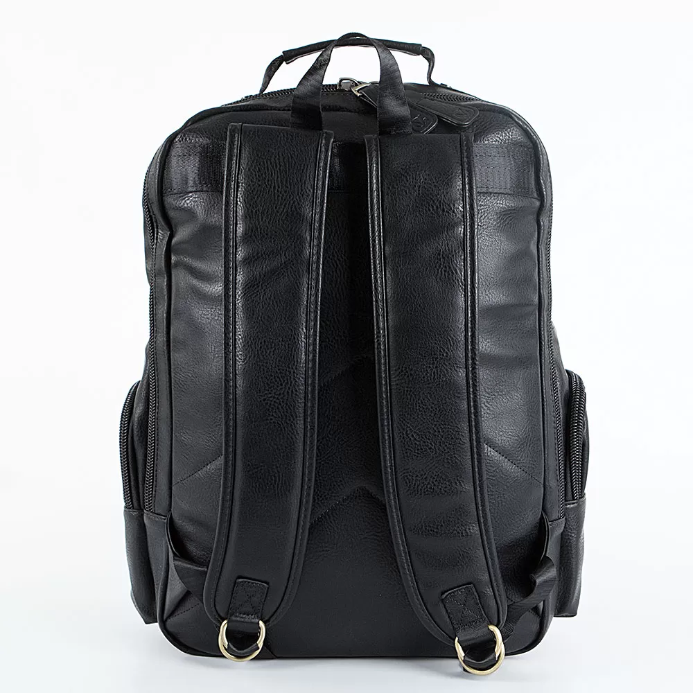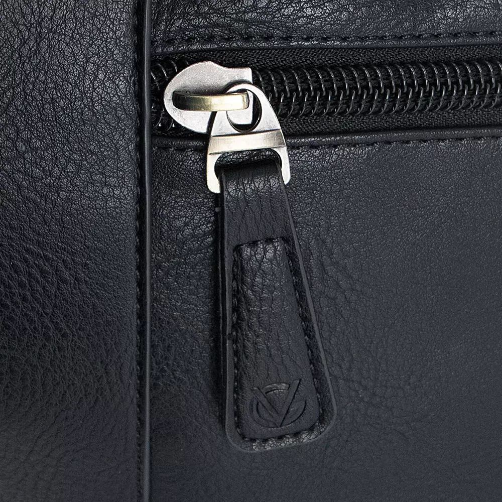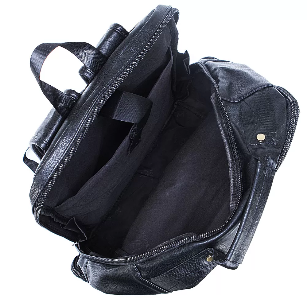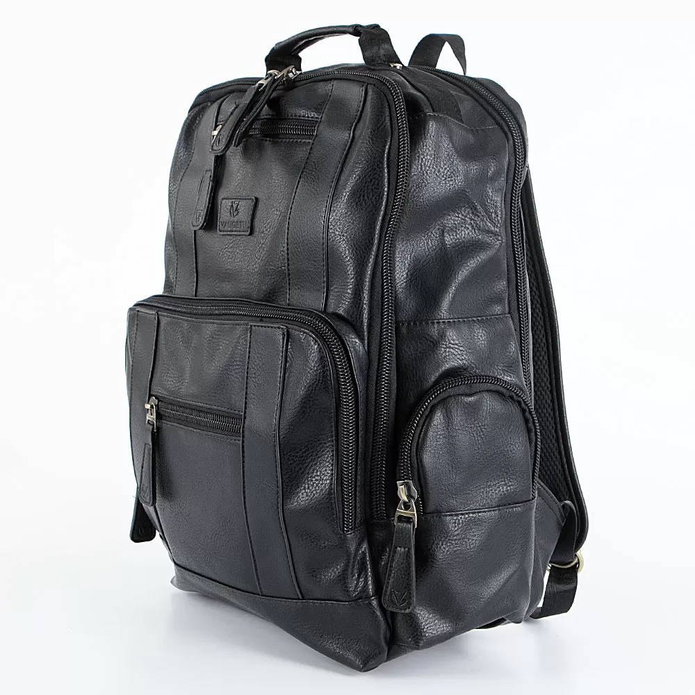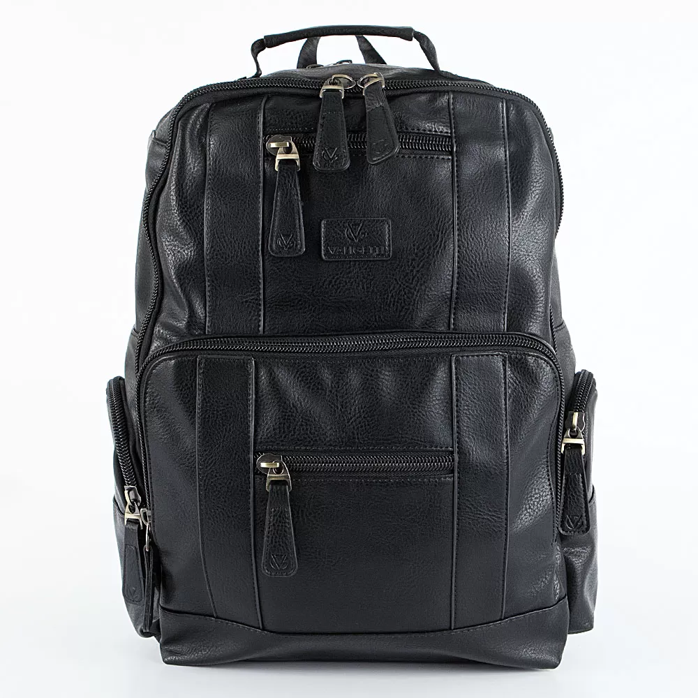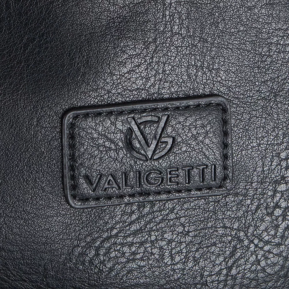 Рюкзак Valigetti выполнен из искусственной кожи в чёрном цвете. Эта модель имеет ручку для переноски, регулируемые лямки и мягкую спинку. Вместительный рюкзак оснащён множеством карманов быстрого доступа для мелочей на молнии. На лицевой стороне расположены три кармана: два маленьких и один средний. По бокам также есть два кармана. Все они выполнены из металлической фурнитуры. В рюкзаке есть два основных вместительных отделения. В одном из них расположены два накладных кармана. Во втором отделении есть место для ноутбука и один потайной карман.