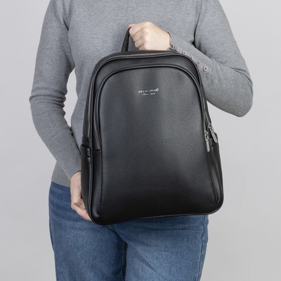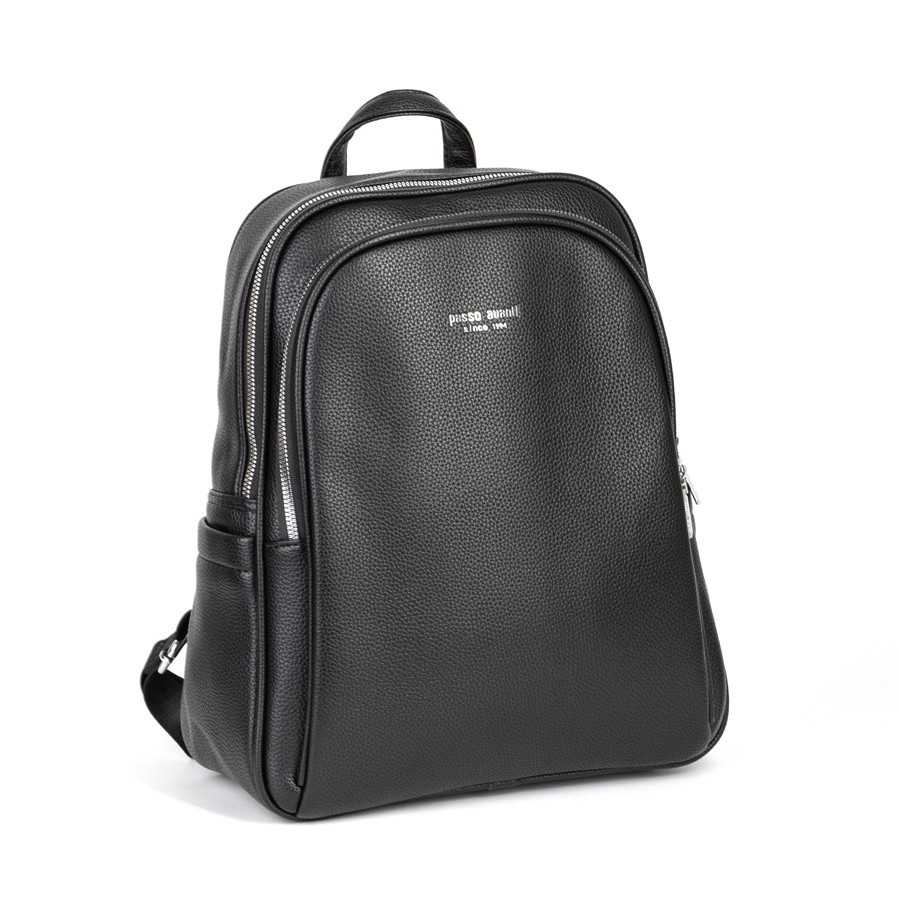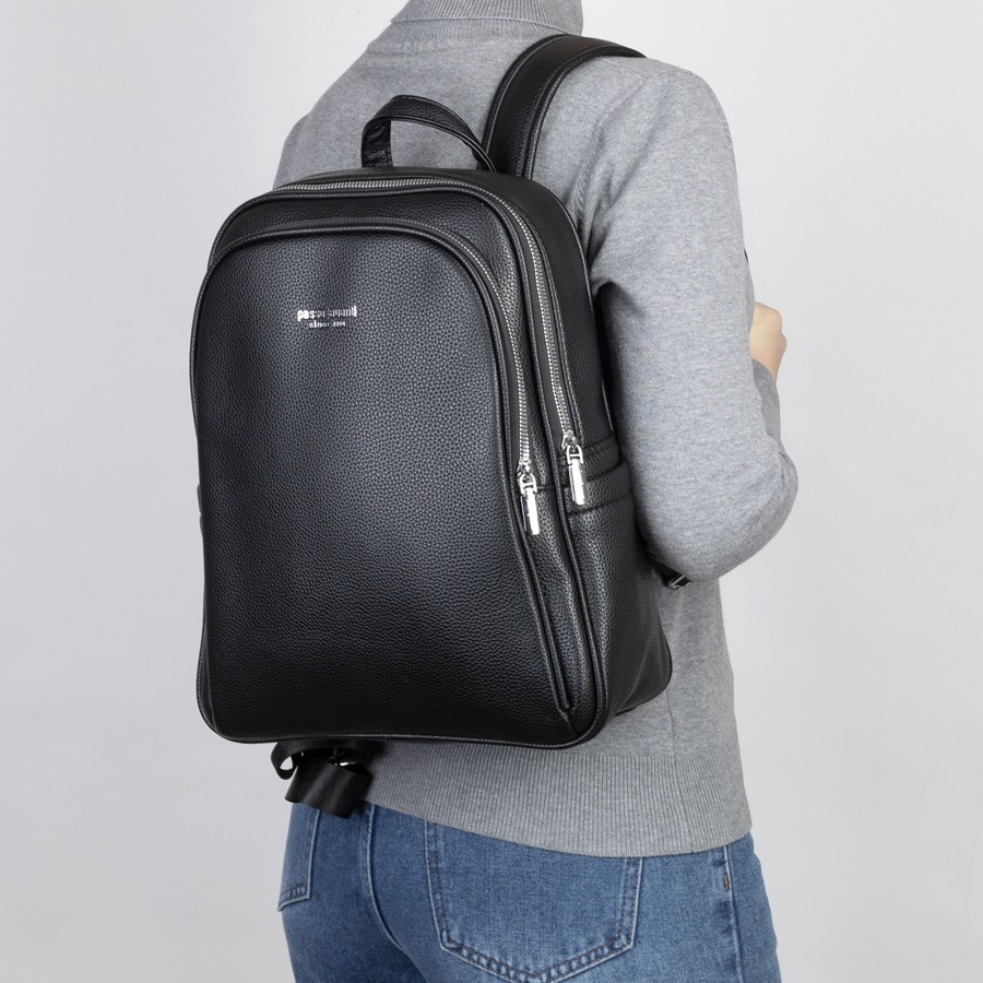 Женский рюкзак бренда Passo Avanti из натуральной кожи с зернистой структурой. Все металлические молнии имеют стильный серебряный цвет. Имеет плечевые лямки и пришитую кожаную ручку. Внутри основного отделения есть карман на молнии, отделение под ноутбук и открытый карман. На лицевой стороне есть дополнительной отделение. По бокам 2 открытых кармашка. С задней стороны есть карман на молнии