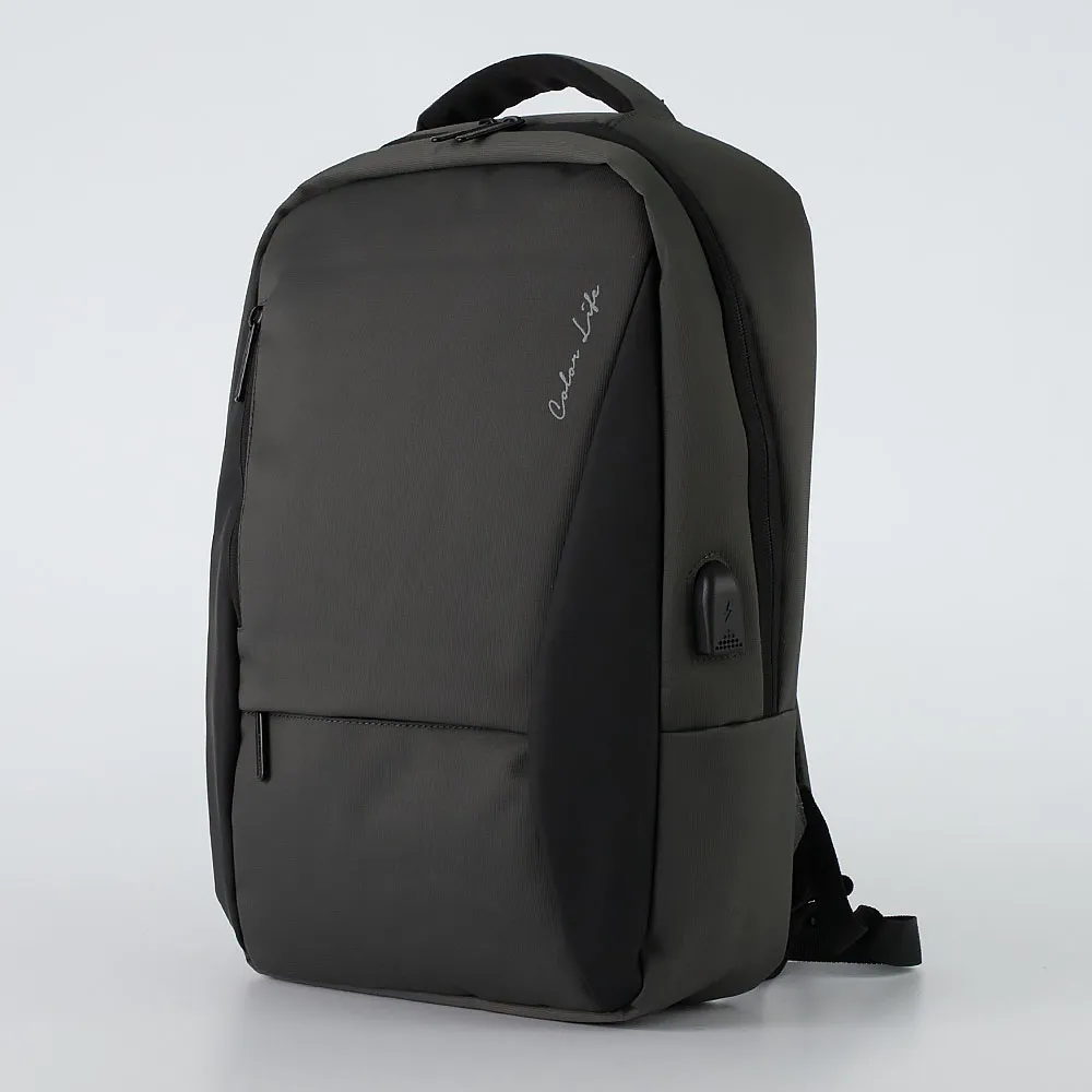 Стильный функциональный рюкзак для ноутбука от торговой марки Color Life выполнен из плотного практичного текстильного материала сер ого цвета. Модель с лямкой, плотной ручкой и широкими регулируемыми плечевыми лямками. Удобная спинка с верхним слоем из дышащей эрго-сетки. Отделение на молнии по трем сторонам, что обеспечивает легкий доступ. Внутри: карманы и отсек для ноутбука. На лицевой стороне – вертикальный карман на молнии, скрытый карман на молнии. Сбоку – карман на молнии. В отделении имеется USB-кабель для внешнего портативного аккумулятора Power Bank, при подключении которого, можно подзаряжать гаджеты через USB-разъем, расположенный снаружи сбоку.