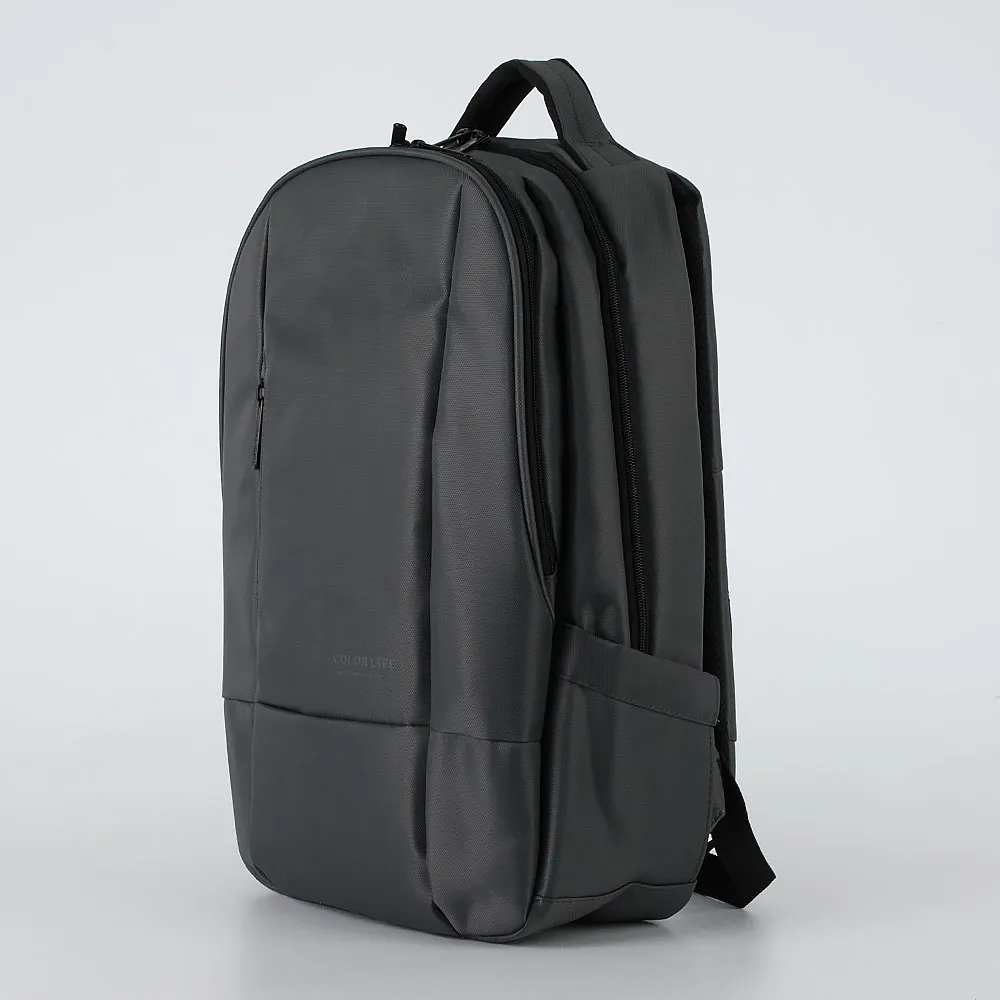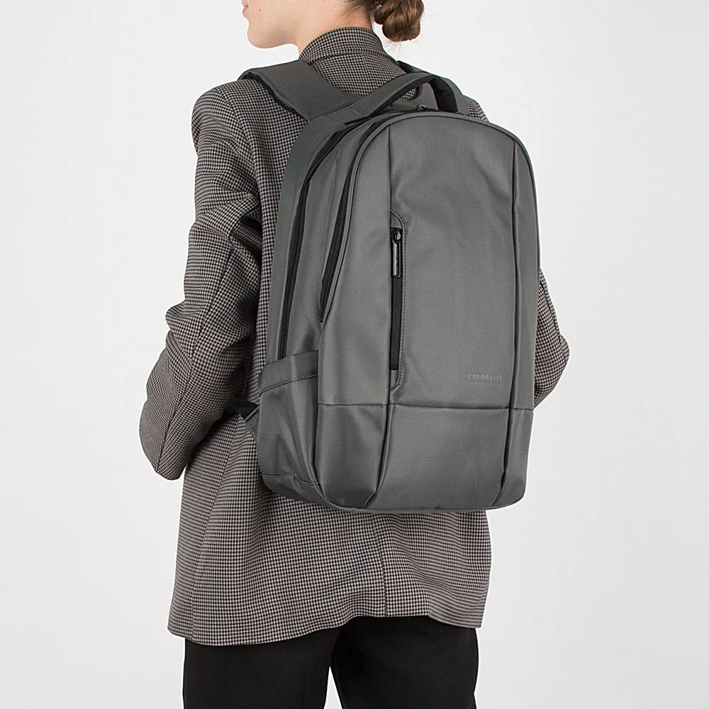 Большой городской рюкзак C.Life для тех кто всё время в движении, и вдруг вы решили поработать в парке, то в рюкзак легко поместится ноутбук. Выполнен из практичного текстильного материала серого цвета. Снаружи эргономичная ручка для переноски, два кармана на молниях и два без застёжек по бокам, плечевые лямки широкие, «спинка» с дышащими накладками. Рюкзак с двумя отделениями на молниях, внутри текстильная подкладка и специализированные карманы с отсеком для ноутбука.