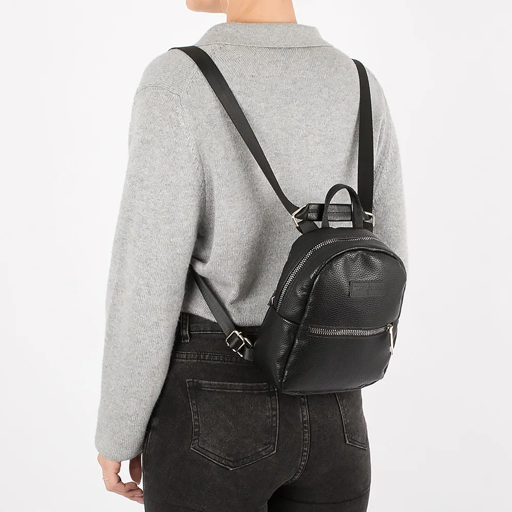 Сумка-рюкзак от торговой марки Passo Avanti из искусственной кожи черного цвета. Компактная модель с лямкой-переноской и плечевыми лямками, которые стягиваются в плечевой ремень. Отделение на молнии. Внутри: накладной карман. На лицевой и задней сторонах – карман на молнии.