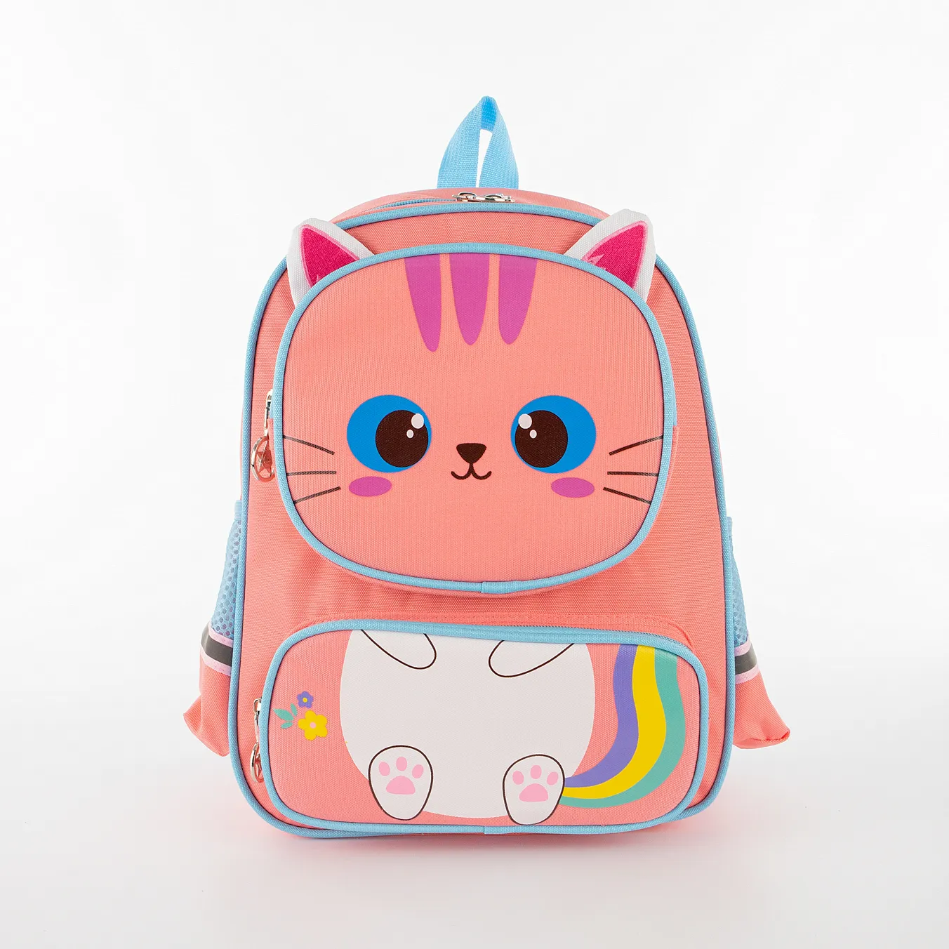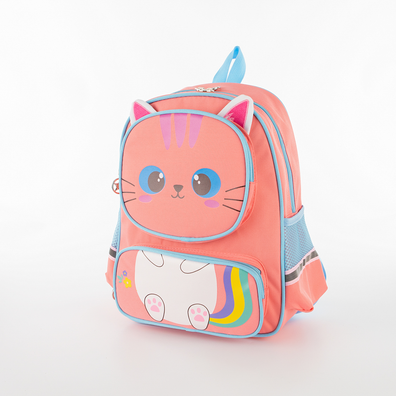 Рюкзак от торговой марки Ecotope из практичного текстильного материала кораллового цвета. Декорирован принтом с изображением котенка. Модель с лямкой-переноской и набивными регулируемыми плечевыми лямками. Спинка с верхним дышащим сетчатым слоем. Отделение на молнии. Внутри: текстильная подкладка, накладной карман. На лицевой стороне – два накладных кармана на молнии. По бокам – карман-сетка. На боковых карманах и плечевых лямках имеются светоотражатели, повышающие безопасность ребенка в темное время. Рюкзак подойдет для занятий по подготовке к школе.