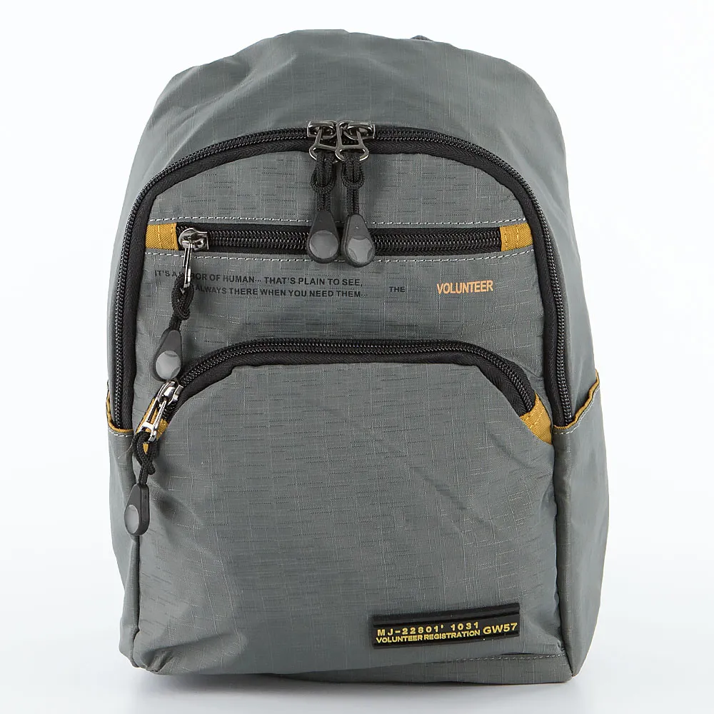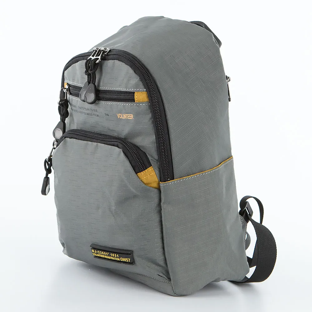 Рюкзак от торговой марки Volunteer из практичного прочного текстильного материала серого цвета. Модель с лямкой-переноской, регулируемыми плечевыми лямками с дышащим верхним слоем. Отделение на молнии. Внутри: текстильная подкладка, карман на молнии, карман с уплотненной стенкой, два накладных кармана. На лицевой стороне – два кармана на молнии. На задней стороне – карман на молнии. По бокам – карман без застежки.